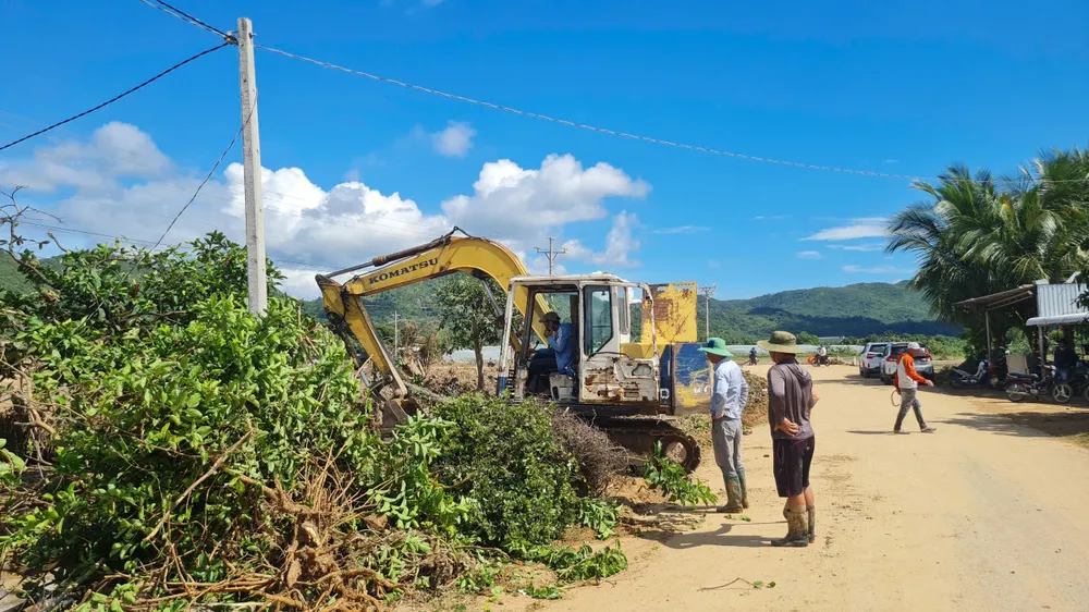 Cây cối, đất đá phủ khắp nơi khiến cho công việc dọn dẹp gặp trở ngại, cần có thời gian xử lý từng khu vực.