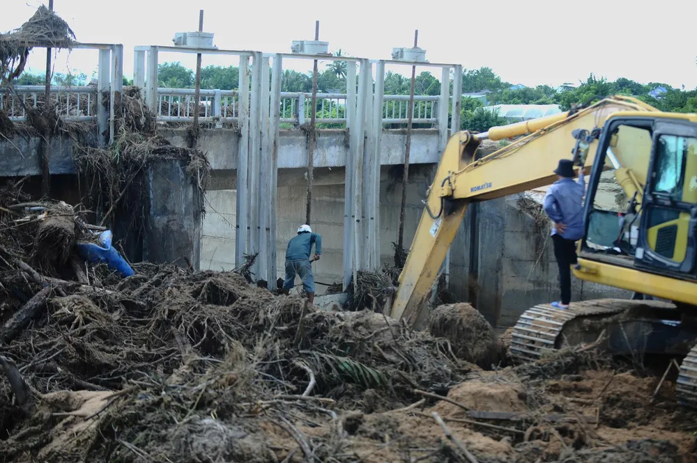 Tới ngày 5-11, chính quyền địa phương, lực lượng Quân đội, Công an và nhiều lực lượng khác đang tiếp tục dọn dẹp hàng ngàn tấn đất đá ngổn ngang sau vụ vỡ hồ chứa nước trên núi Tân Lai xảy ra tối 1-11