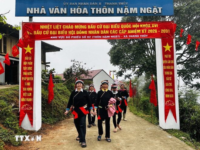 Người dân vùng biên giới Thanh Thủy (Tuyên Quang) hân hoan đi bỏ phiếu bầu cử đại biểu Quốc hội và đại biểu Hội đồng nhân dân các cấp nhiệm kỳ 2026–2031. (Ảnh: Đức Thọ/TTXVN)