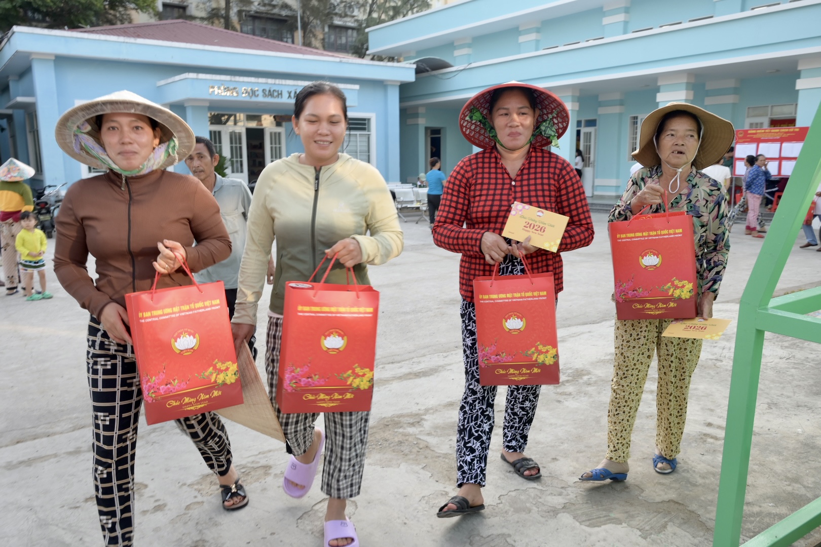 Từng chiếc túi quà tết được trao tận tay mọi người, gửi gắm niềm động viên, lời chúc có một cái tết đầm ấm, vui tươi.