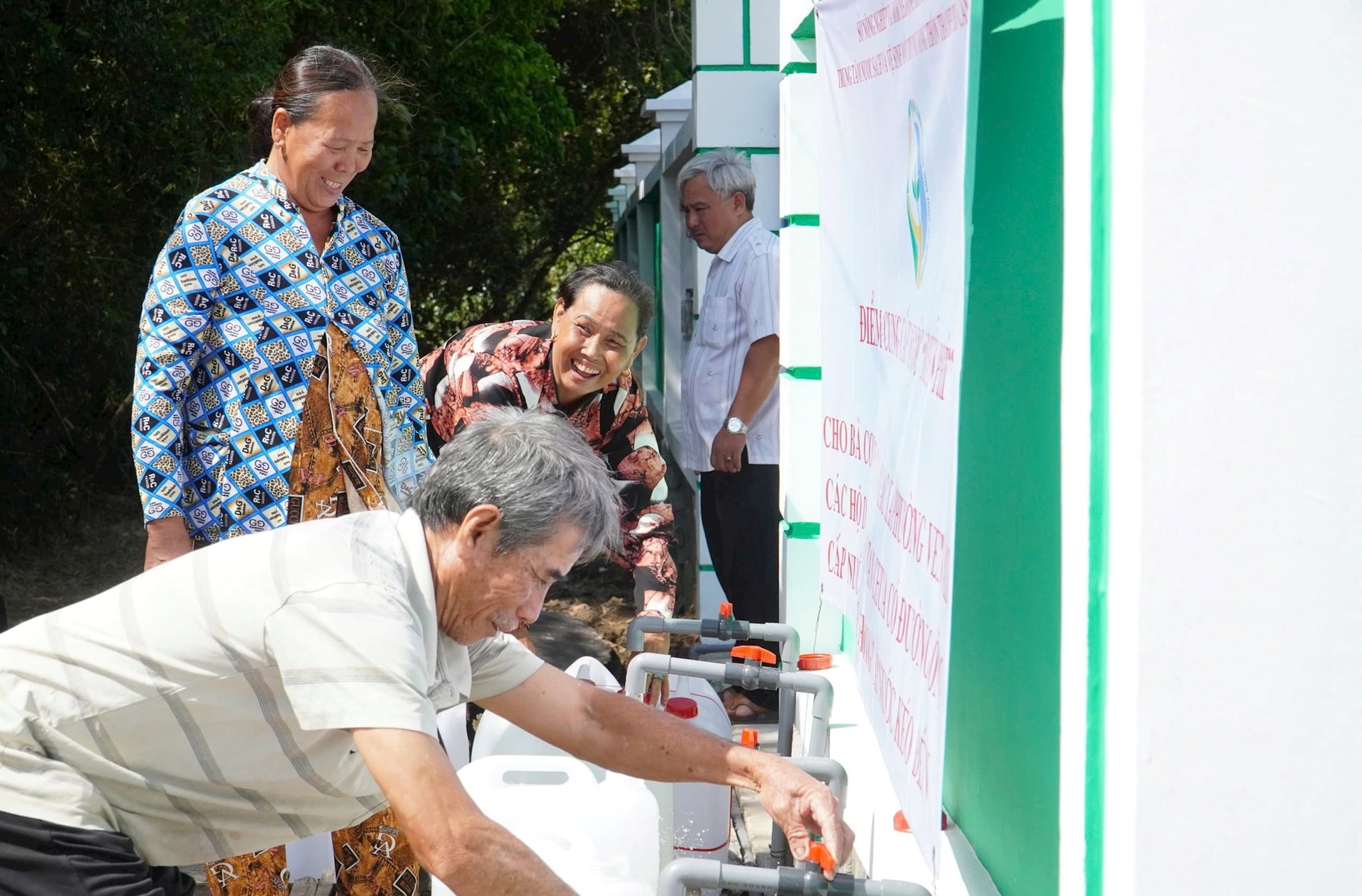 Người dân phấn khởi khi được tiếp cận nguồn nước sạch miễn phí.