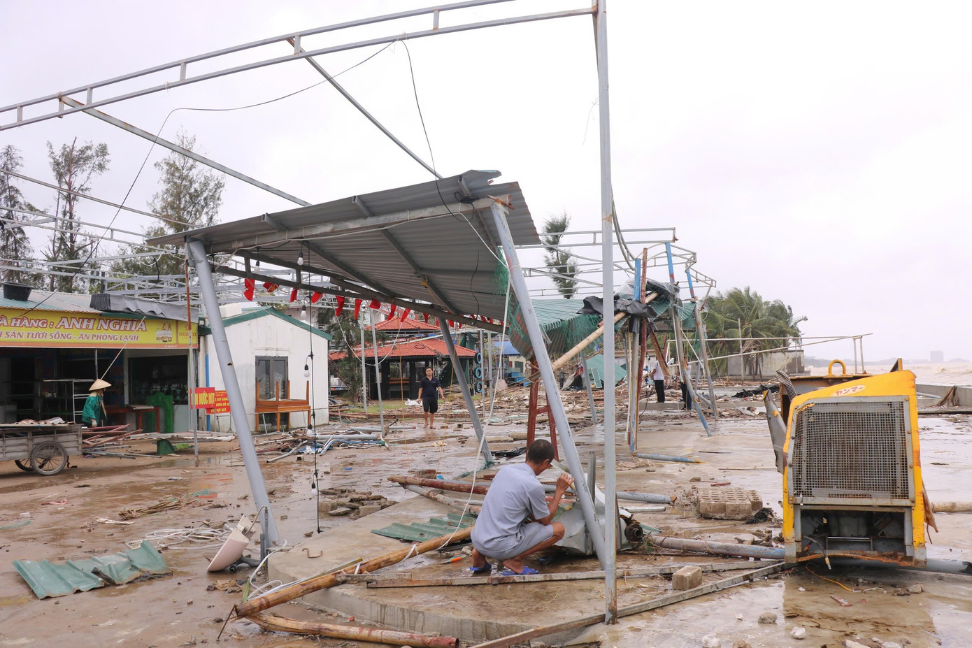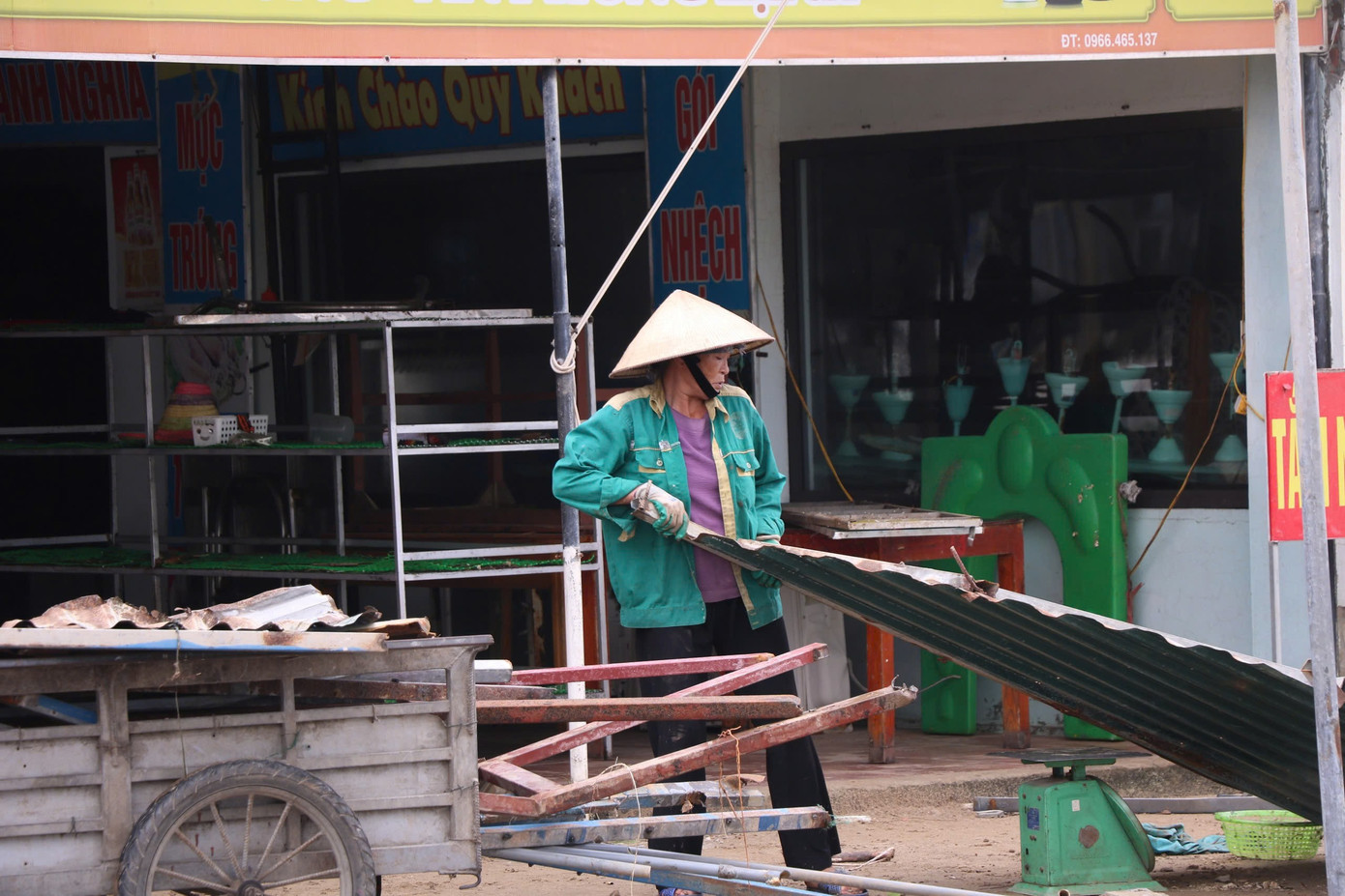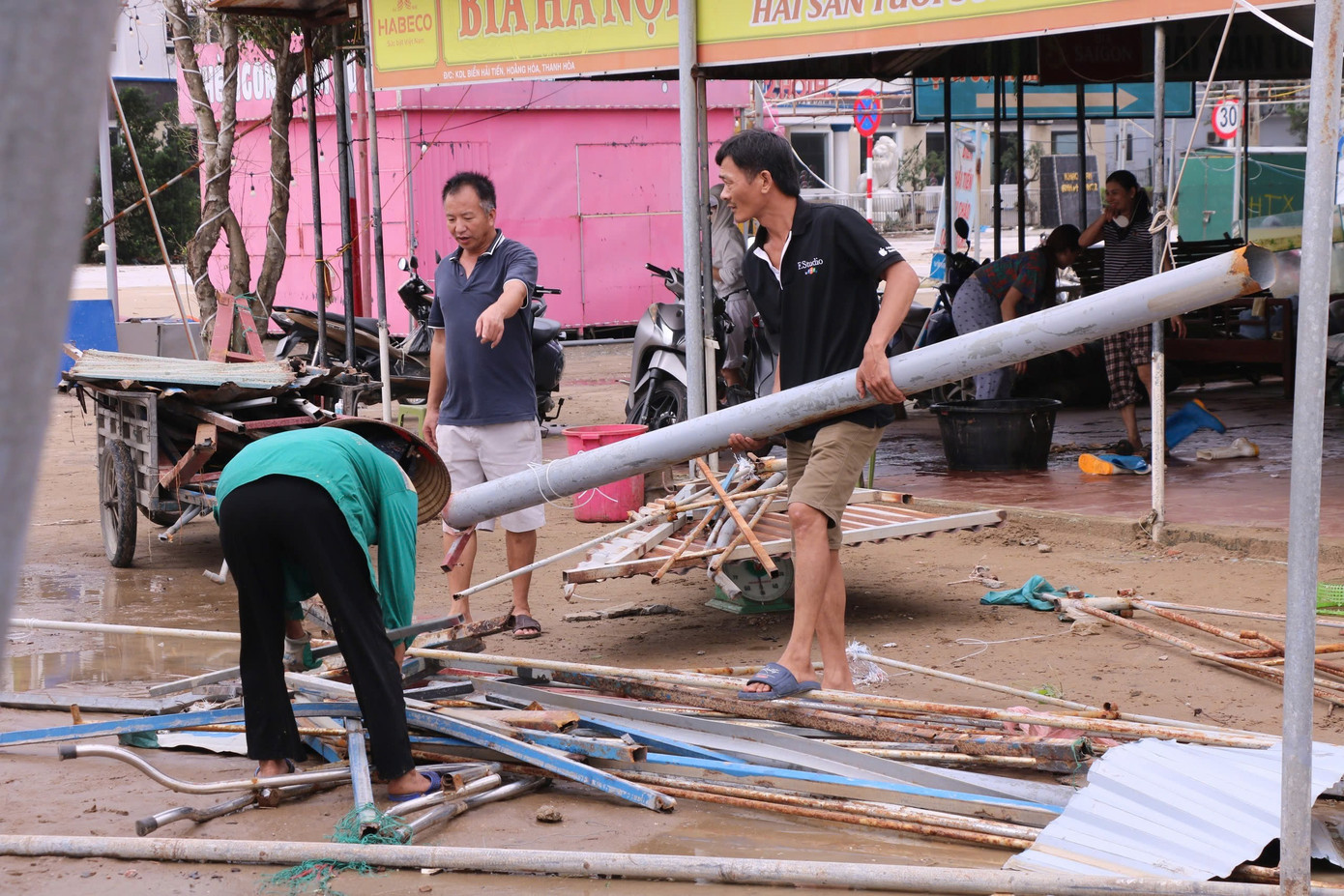 Trước bão, bãi biển Hải Tiến có dãy lán dài khoảng 300m được ngư dân xây dựng sát ngay bến thuyền. Đây là nơi neo đậu, cất giữ ngư cụ mỗi khi ngư dân trở về sau chuyến ra khơi. Chỉ sau một đêm bão tràn vào, hơn 20 lán đồng loạt đổ sập, biến thành bãi đổ nát, ngổn ngang.