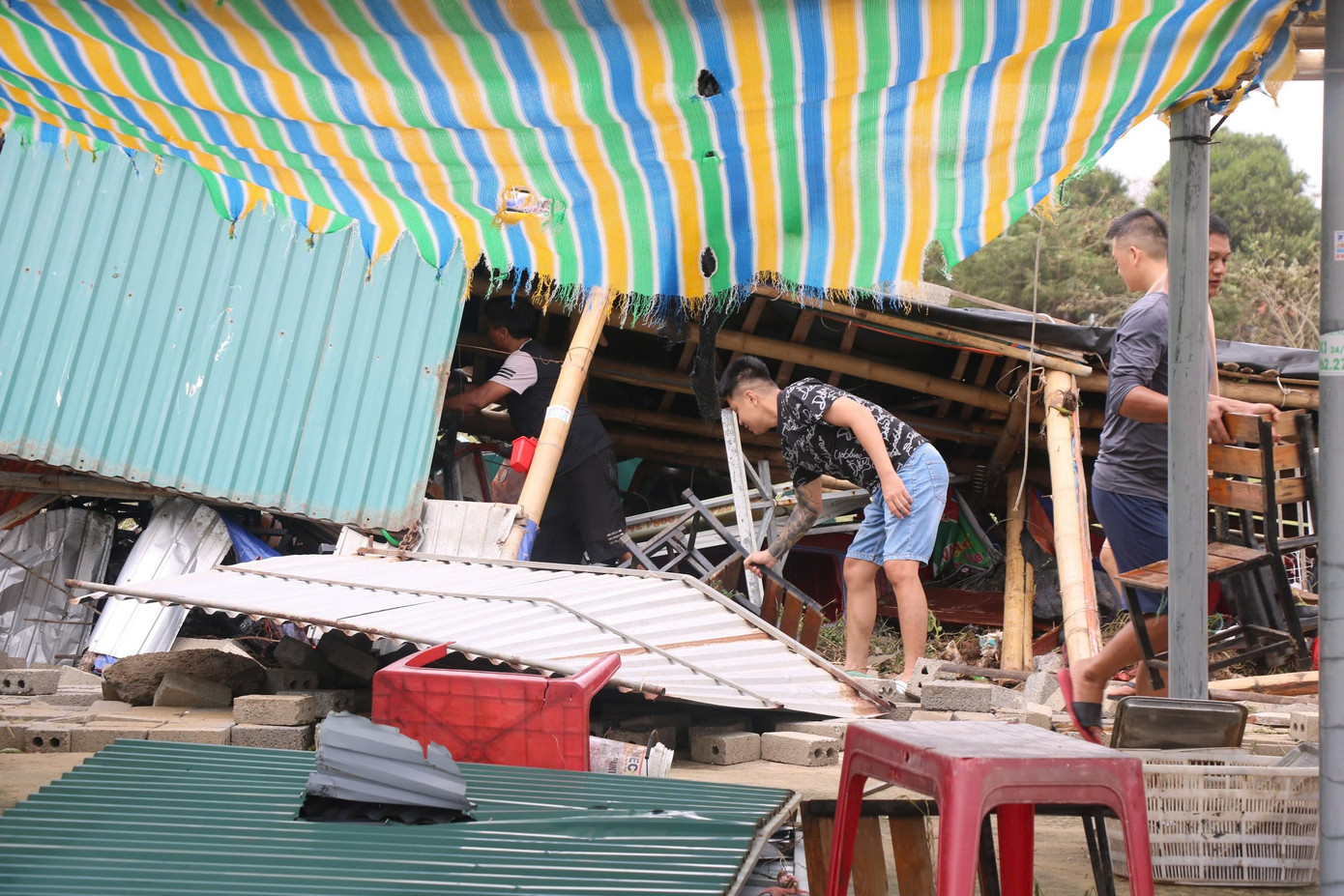 Một chủ quán nước dọc bờ biển cho biết, nhà, lán của gia đình dựng để kinh doanh bị đánh sập hoàn toàn, thiệt hại hàng chục triệu đồng.