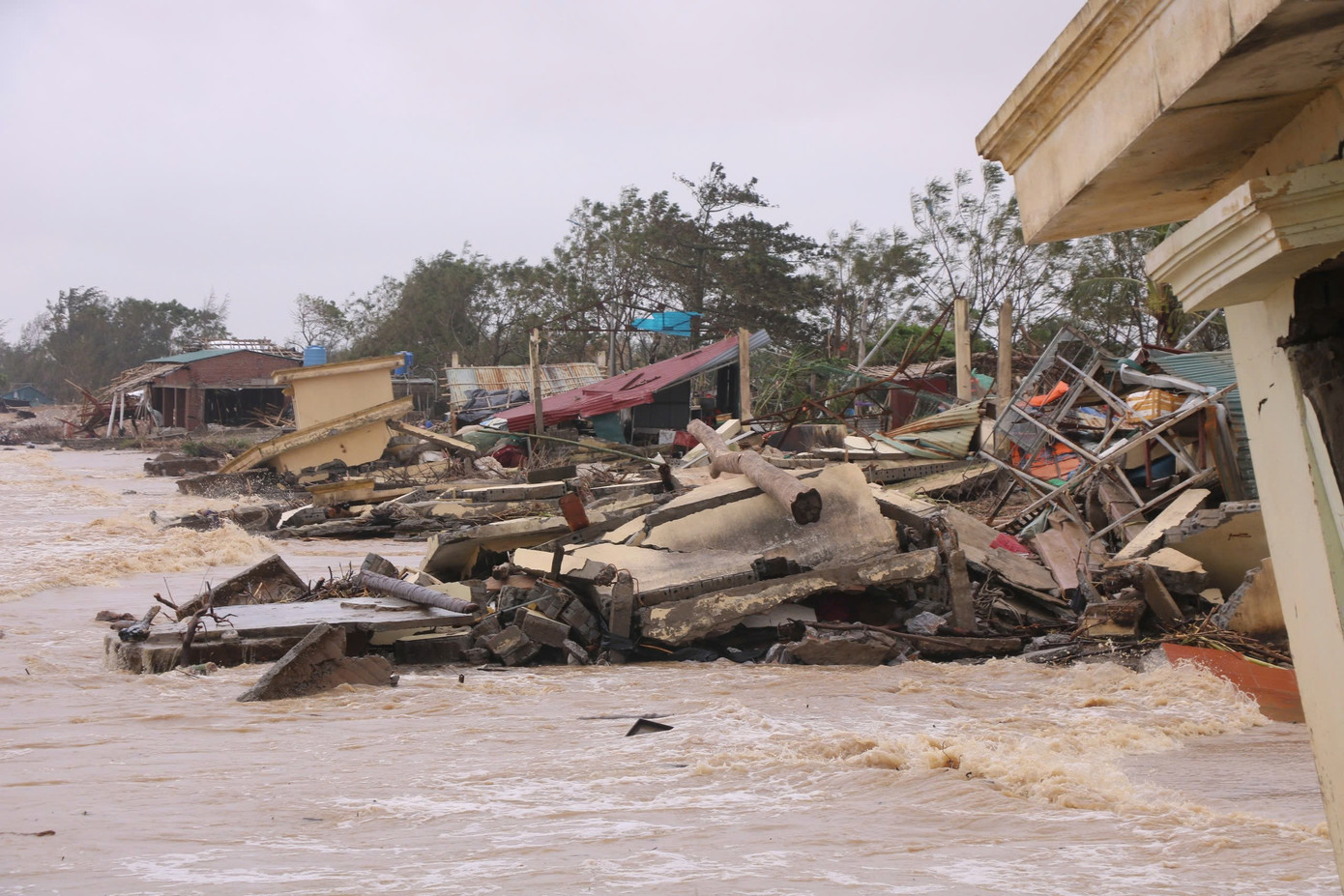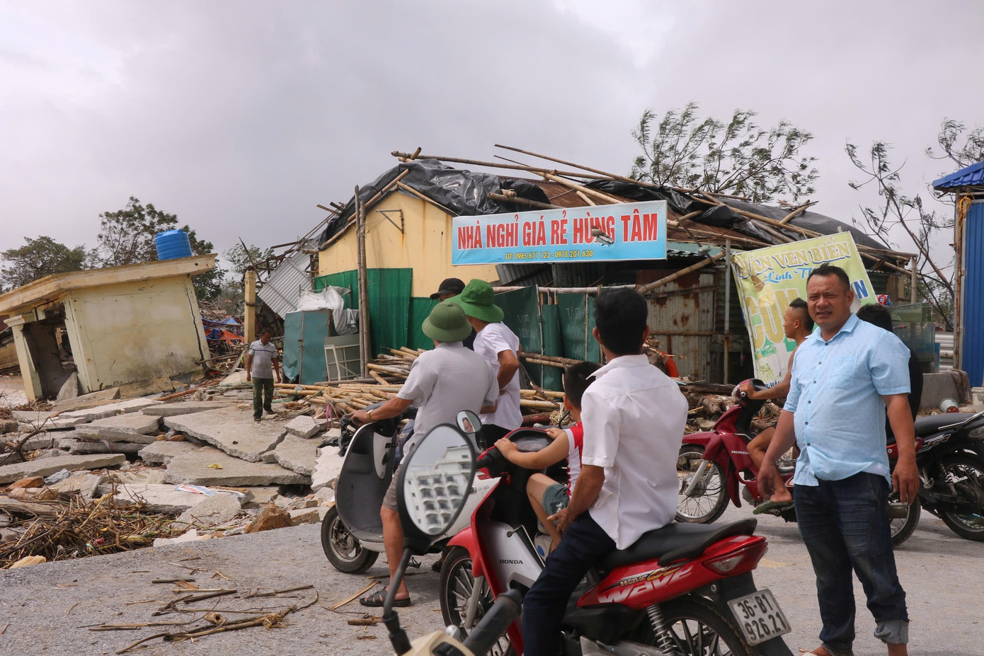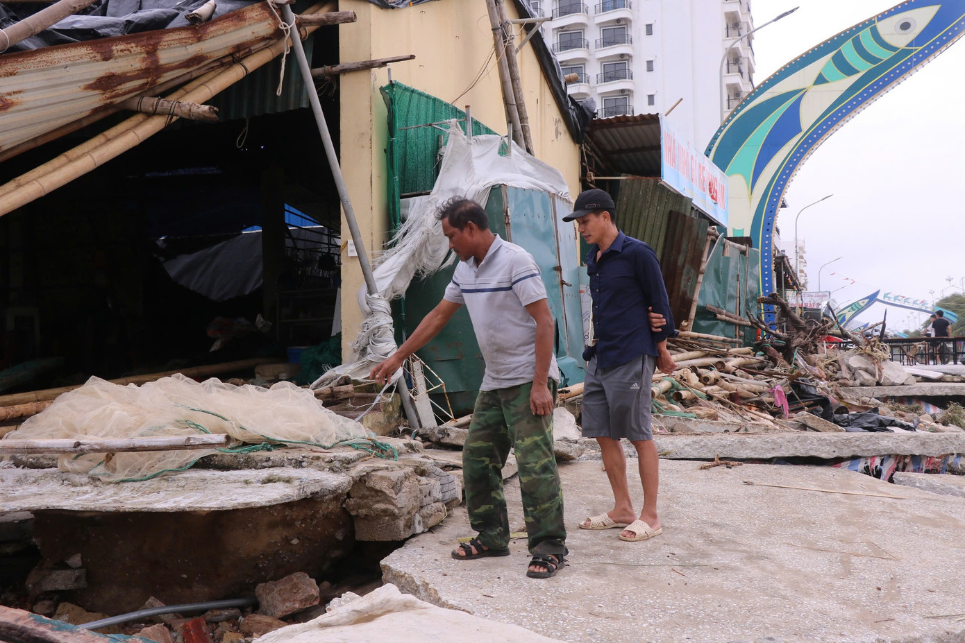 Một ngư dân địa phương chỉ tay vào đống gạch vụn, ngậm ngùi: "Bao năm làm lụng mưu sinh ở đây nhưng tôi chưa thấy trận bão nào tàn phá như lần này. Thiệt hại lớn quá".