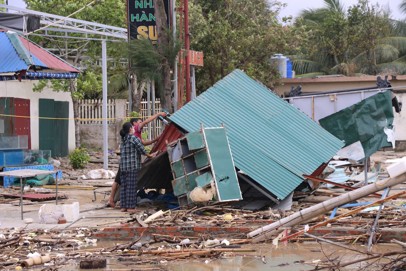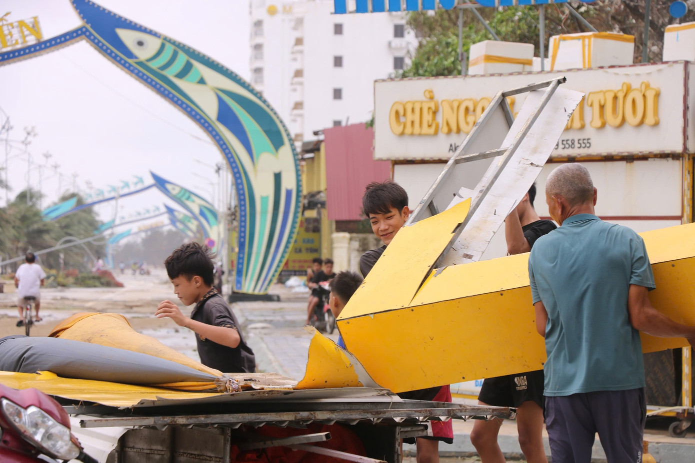 Sau khi cơn bão đi qua, người dân ven biển cùng dọn dẹp đống đổ nát.