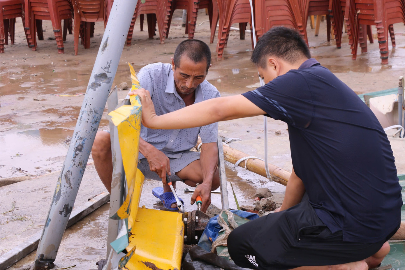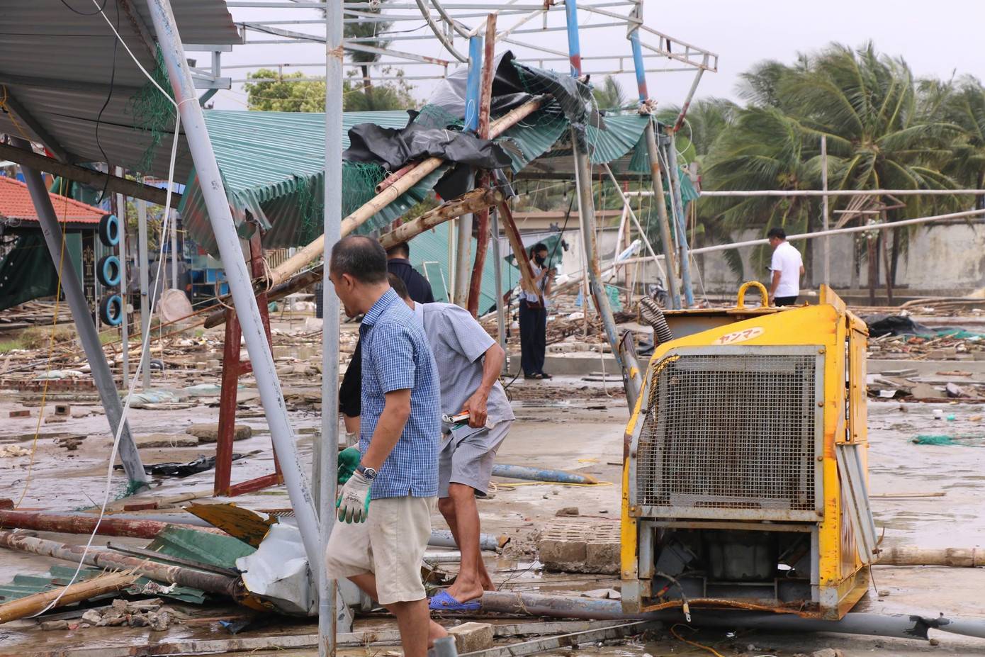 Sau cơn bão, nhiều ngư dân tập trung tại khu vực bến thuyền để chuẩn bị phương án dọn dẹp phần đổ nát.