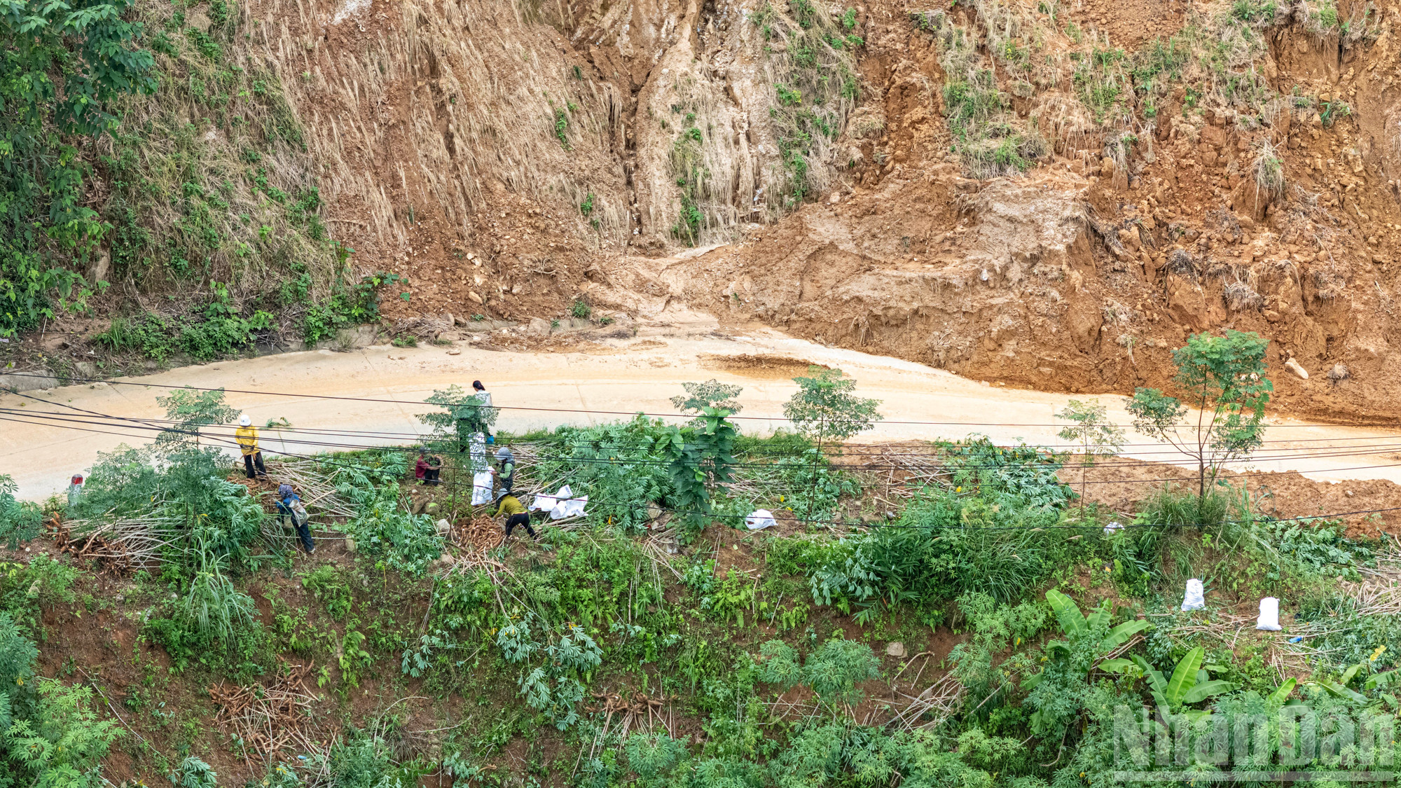 Việc thu hoạch ngay tại điểm vừa sạt lở cũng tiềm ẩn nhiều nguy hiểm. Người dân đã đợi chờ gần một tuần để thời tiết thuận lợi, đất khô ráo hơn để tiến hành thu hoạch.