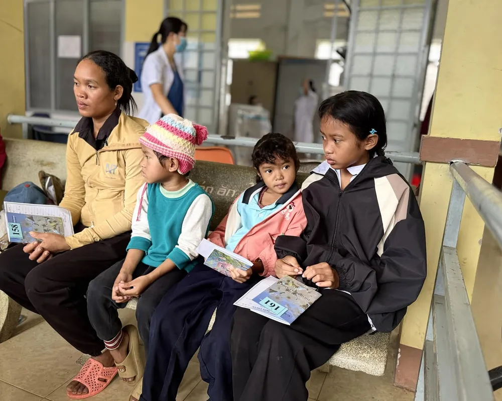 "Làm nông cực lắm, lại ít có thời gian, nên đi bệnh viện xa thì khó. Nay nghe được kêu đi khám, mẹ con tôi mừng lắm. Hai cháu lâu rồi chưa được khám mắt, khám răng, giờ có bác sĩ về tận nơi thì yên tâm hơn nhiều” – chị Đau chia sẻ, bàn tay nhẹ nhàng chỉnh lại áo cho con.