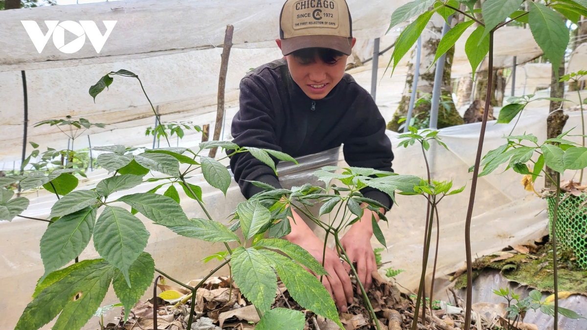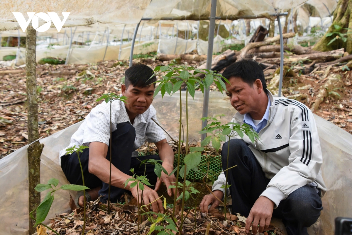 Anh A Phú chia sẻ, trồng sâm Ngọc Linh không hề dễ. Loài sâm này chỉ sống được dưới tán rừng tự nhiên, nơi có mùn rừng, độ ẩm và ánh sáng phù hợp. Người trồng phải liên tục dọn cây đổ, chống chuột phá hoại, giữ ẩm bằng mùn rừng và chăm sóc để cây ra hoa, kết hạt. Hằng năm, anh tự ươm giống từ hạt để trồng mới hoặc bán cho người có nhu cầu, tạo nguồn thu ổn định cho gia đình. Nhờ trồng sâm dưới tán rừng, cuộc sống của gia đình anh A Phú có nhiều đổi thay.