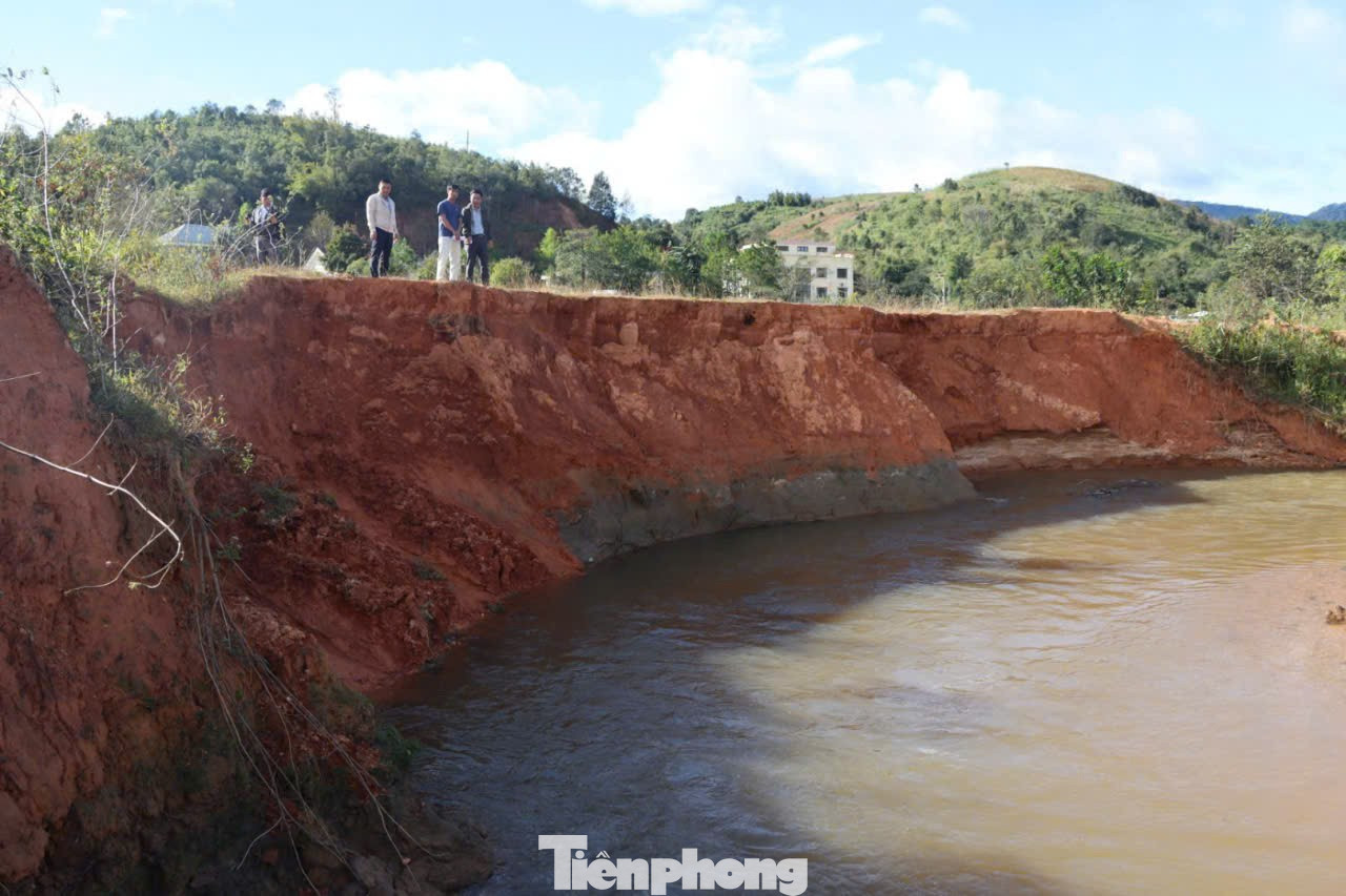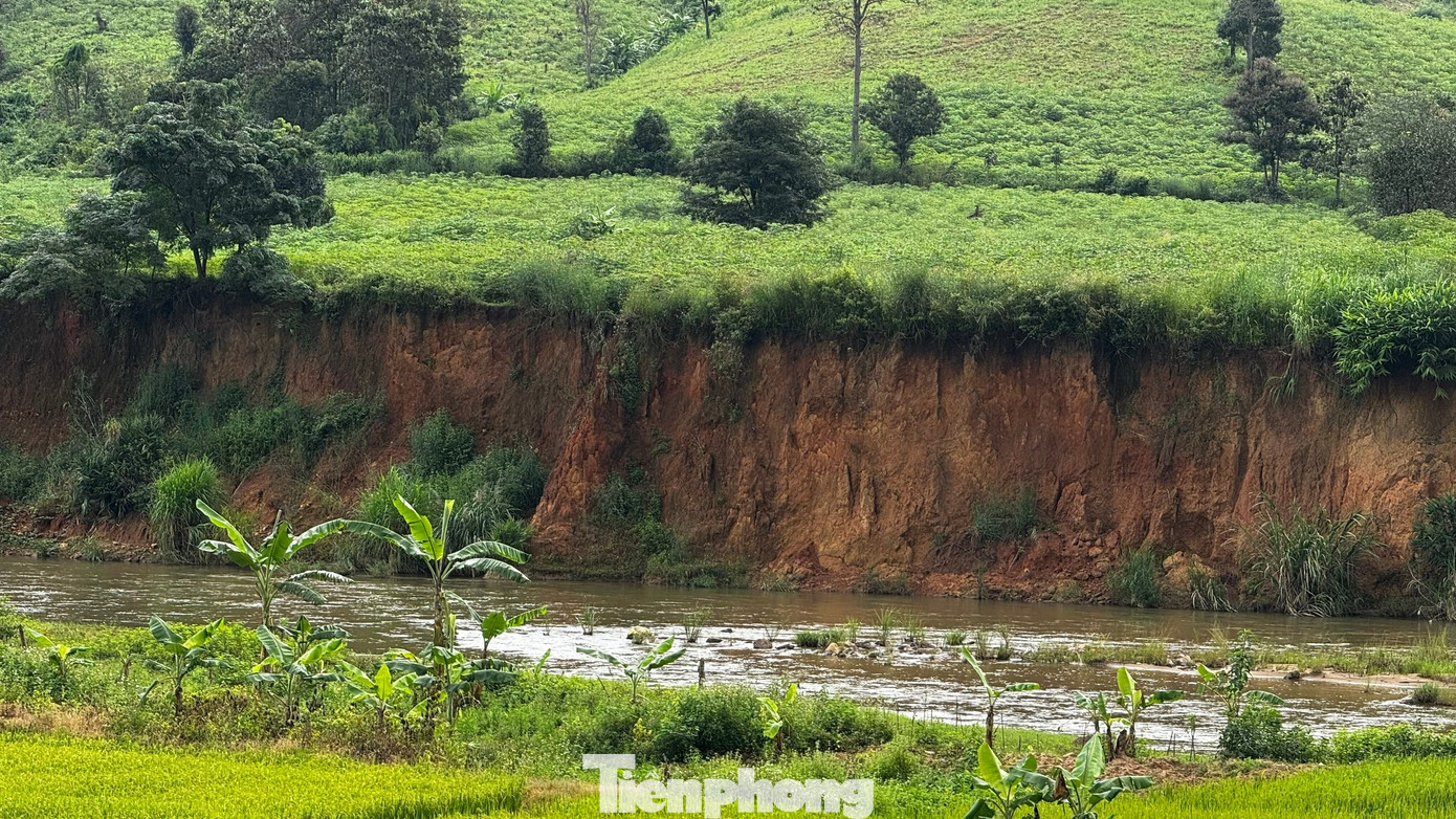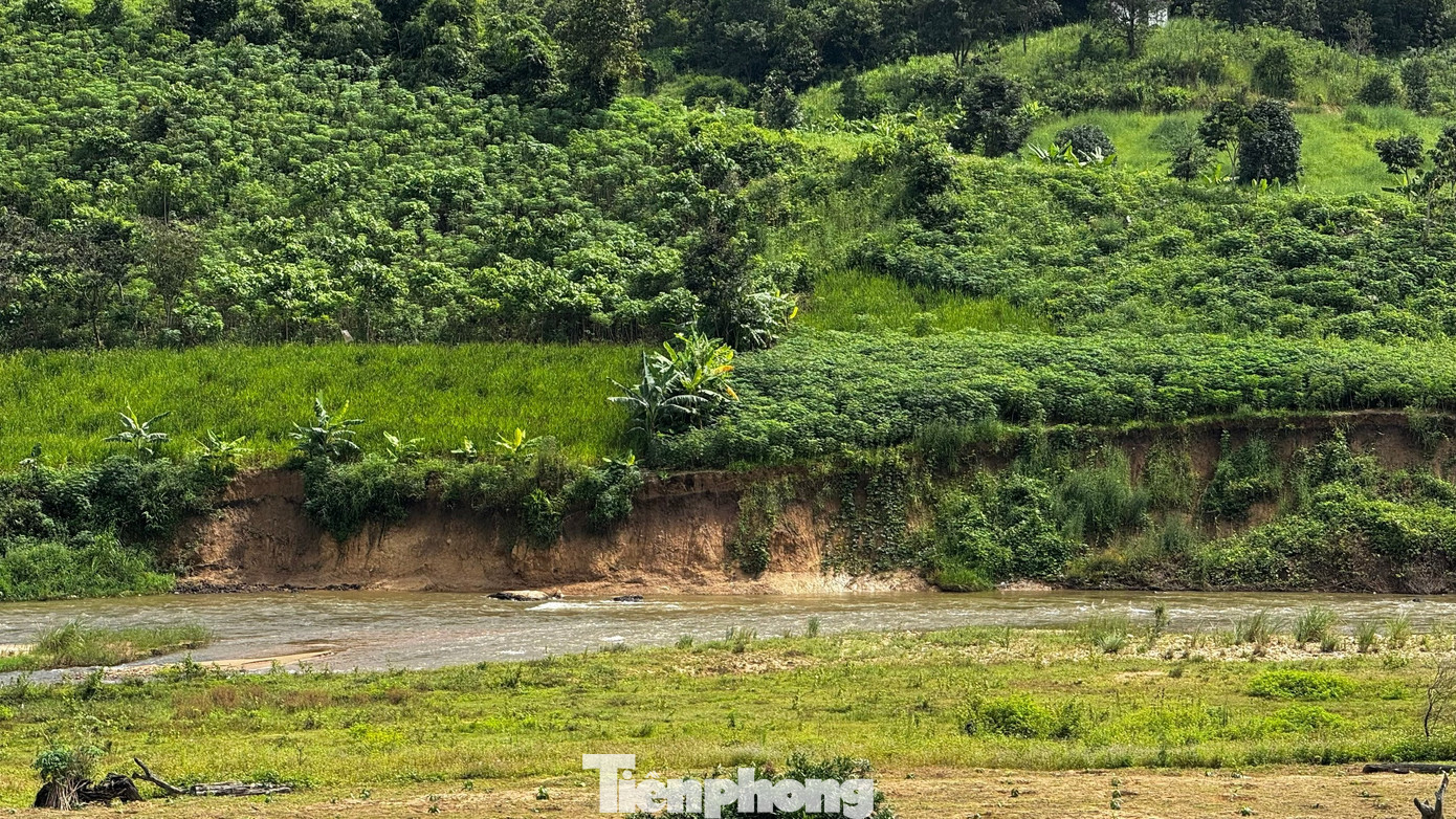 Dọc bờ sông, từng mảng đất lớn bị nước xoáy sâu tạo hàm ếch. Nhiều đoạn mép nước chỉ còn cách đường dân sinh vài chục centimet. Tuyến đường này lại là lối đi duy nhất kết nối hơn 120 hộ dân làng Kon Skôi với trung tâm xã. Chỉ cần một trận mưa lớn nữa, con đường có thể biến mất bất cứ lúc nào, kéo theo nguy cơ cô lập toàn bộ làng.