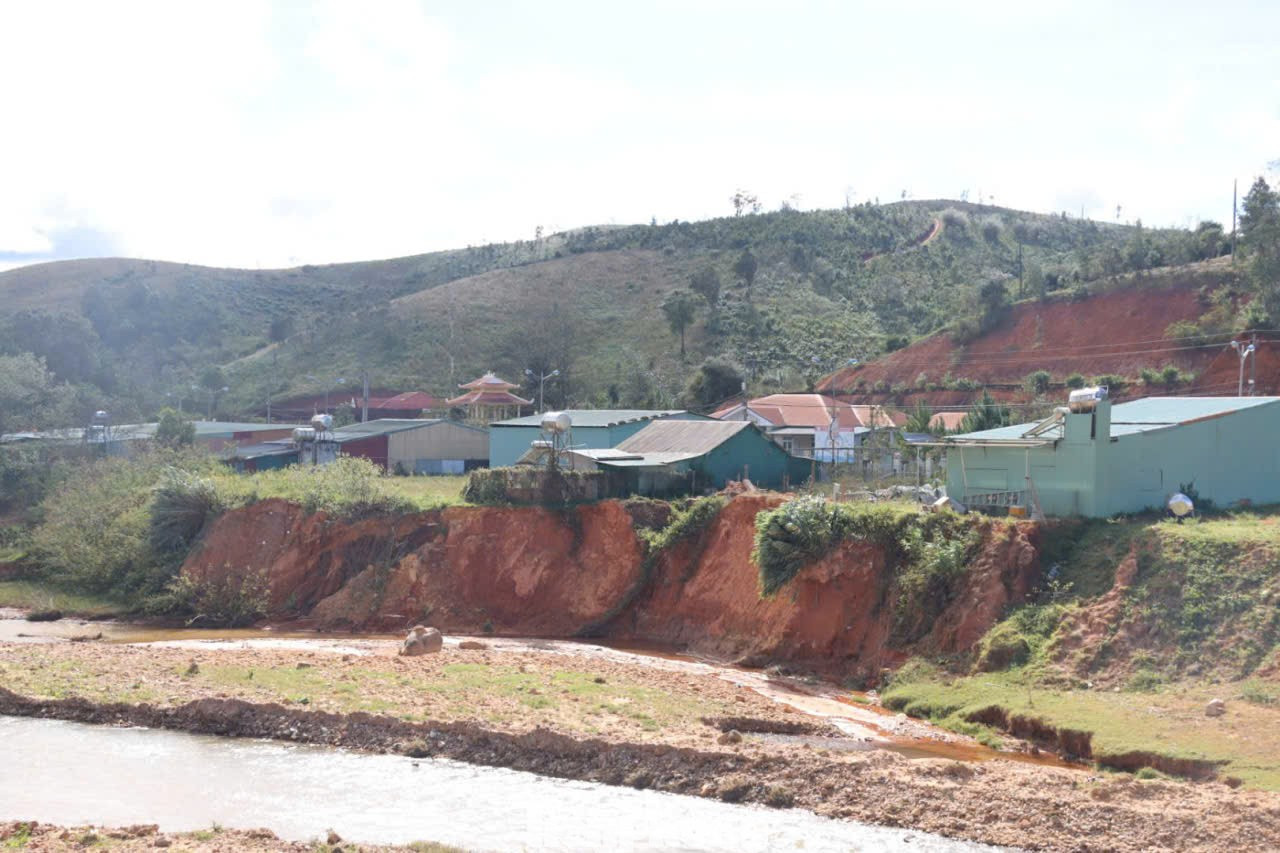 Tương tự, tại xã Tu Mơ Rông (tỉnh Quảng Ngãi), sạt lở ở suối Đăk Ter tiếp tục lan rộng, tạo thành vách dựng đứng, ăn sâu vào khu dân cư, trường học, chợ trung tâm xã và cả Quốc lộ 40B.