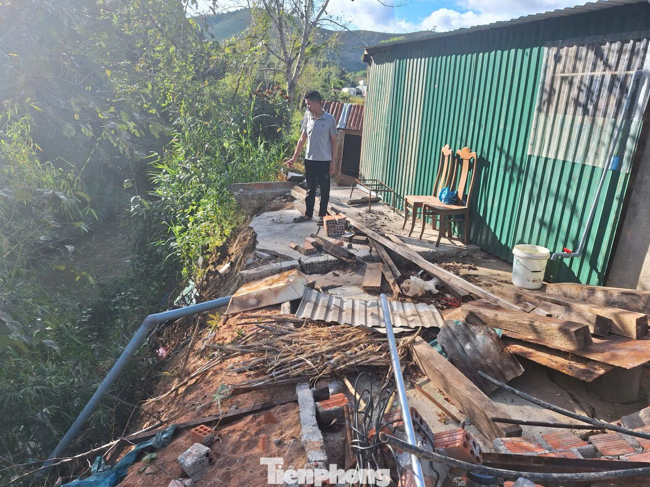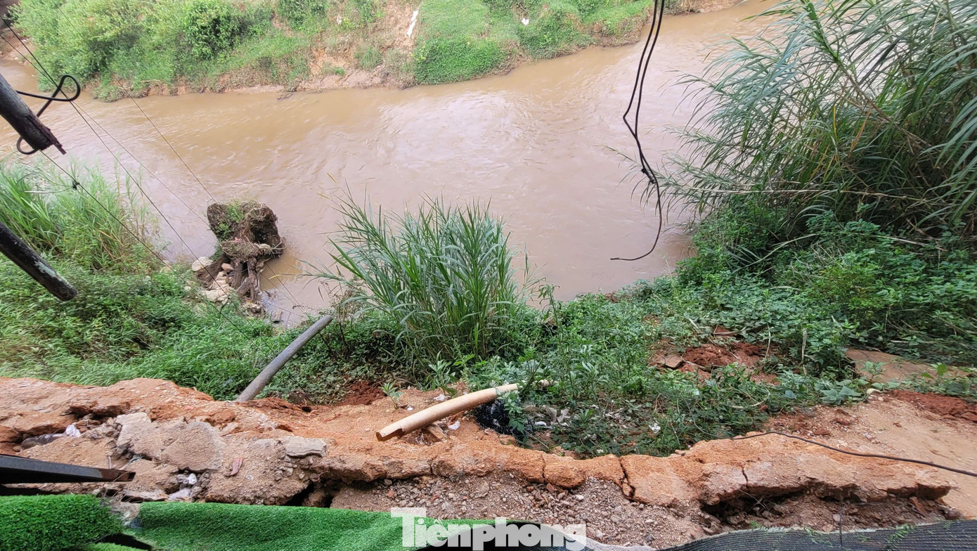 Cách đó không xa, nhà ông Mai Xuân Cấp vị trí sạt lở chỉ còn cách chân tường vài chục centimet. Một đợt lũ bất thường có thể khiến căn nhà đổ ập xuống suối.