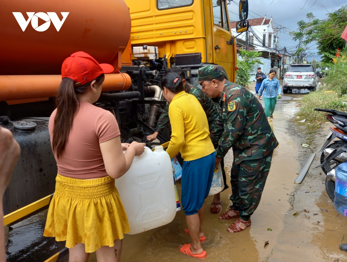 Bộ Chỉ huy quân sự tỉnh Khánh Hòa chở nước sạch cung cấp cho người dân