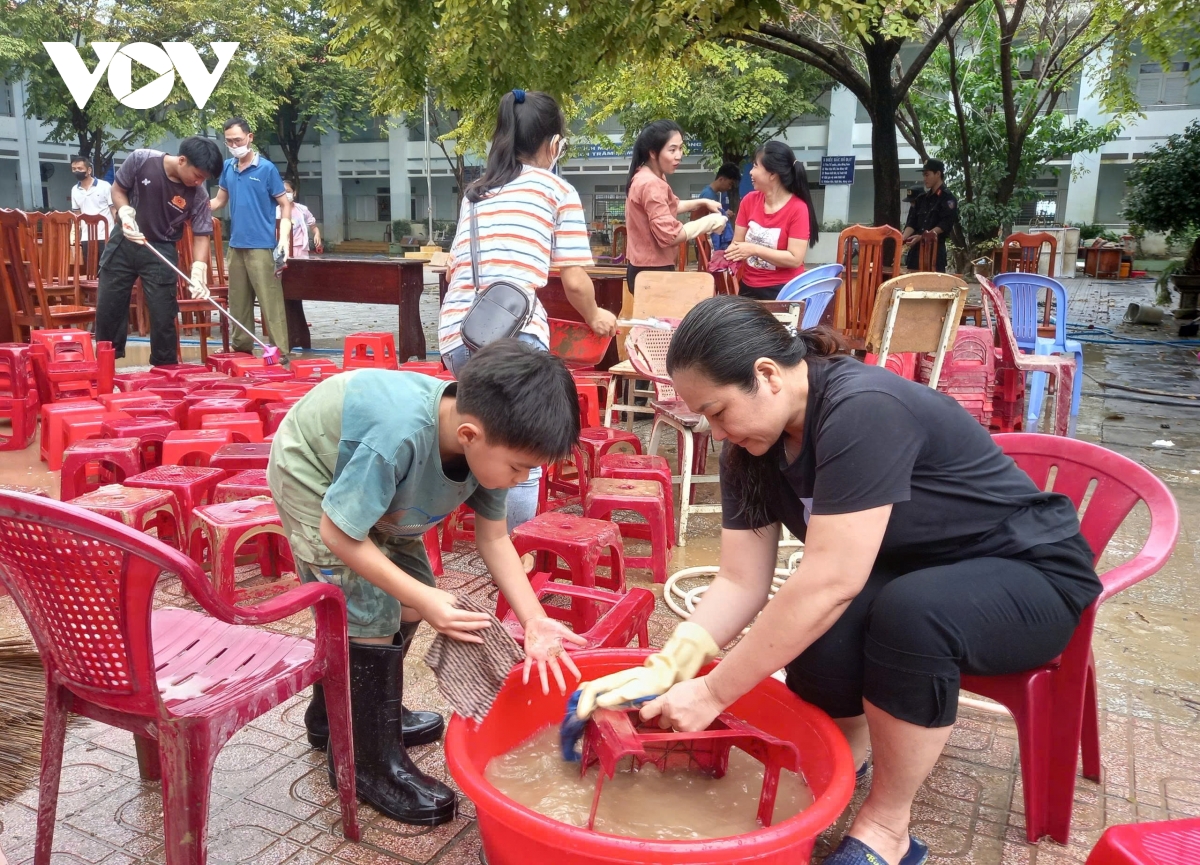 “Lên dọn để chuẩn bị cho học sinh đến trường, cũng như bao người khác, gia đình tôi cũng bị thiệt hại đáng kể, đang khắc phục dần dần để ổn định. Các cháu học sinh sách, vở áo quần cuồn trôi hết, hư hại hết, không còn đồ dùng, vật dụng đến trường rất khó khăn”, cô Nguyễn Thị Hương Nhu nói.