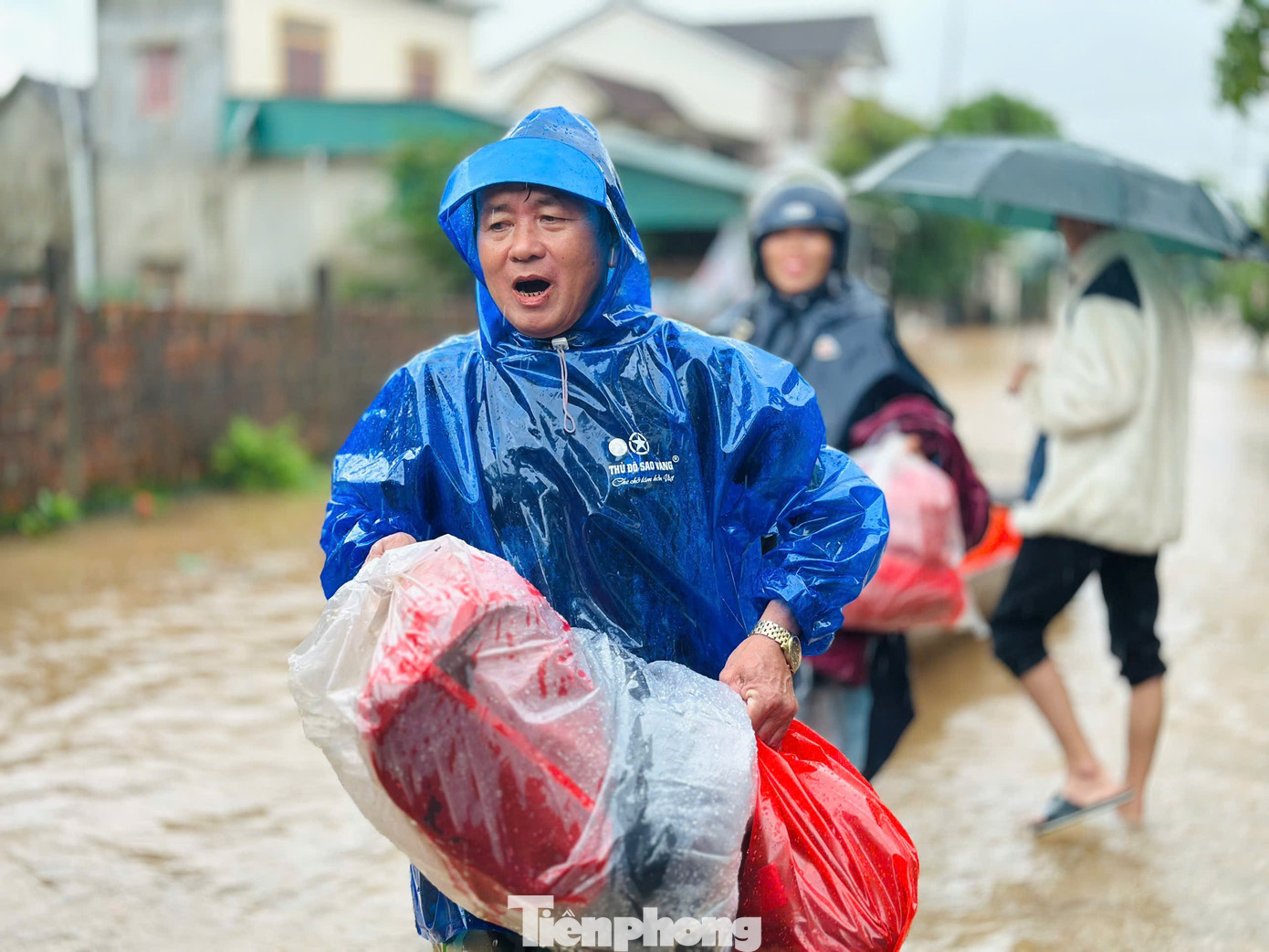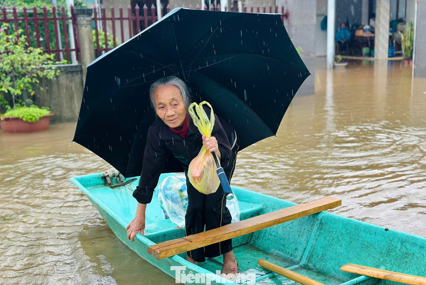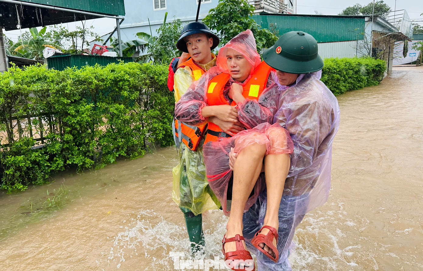Gia đình bà Bùi Thị Tâm (67 tuổi, trú thôn Trung Thành, xã Cẩm Duệ) được lực lượng cứu hộ dùng thuyền vượt lũ vào nhà để hỗ trợ di dời người thân đến nơi an toàn. Ngôi nhà của bà Tâm bị ngập sâu hơn 2 mét, khiến cả gia đình bị cô lập nhiều giờ. Trong khi đó anh Phan Văn Giáp (32 tuổi, con trai bà Tâm) bị liệt sau một vụ tai nạn, không thể tự di chuyển, nên gia đình đã gửi lời cầu cứu đến lực lượng chức năng. Nhận được thông tin, đội cứu hộ nhanh chóng tiếp cận, đưa bà Tâm cùng con trai và mẹ già ra khỏi vùng ngập, di chuyển đến khu vực cao ráo để tránh lũ an toàn.