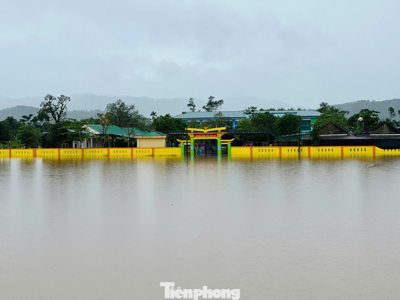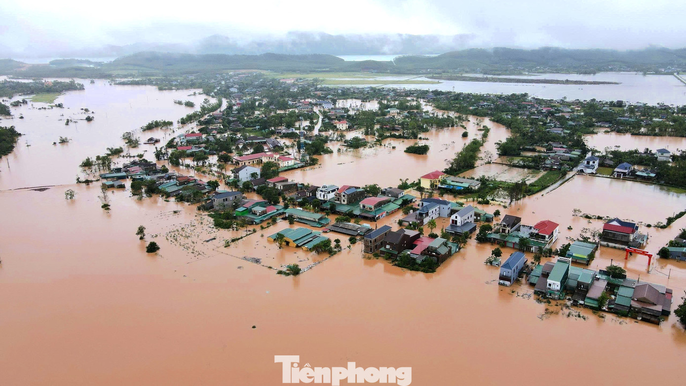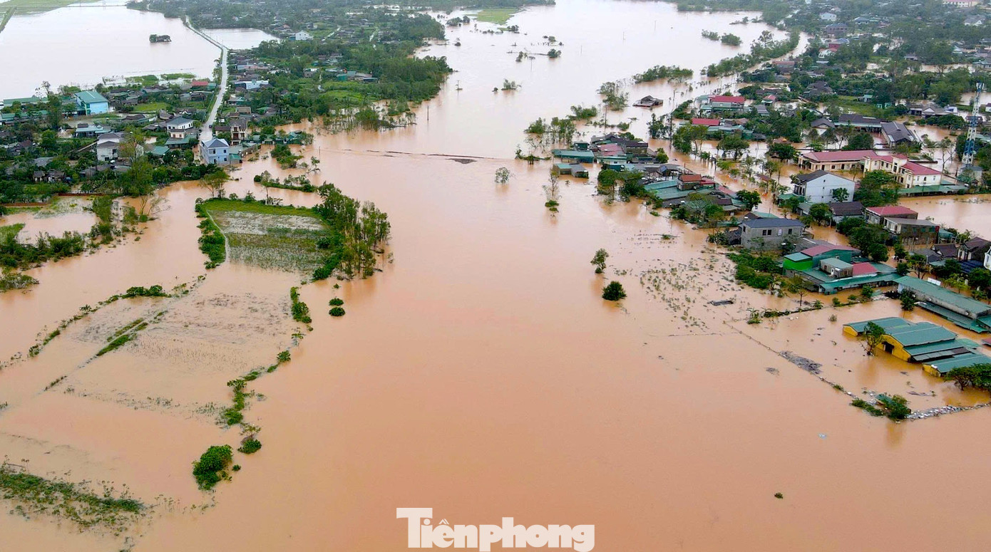 Tại xã Cẩm Duệ, mưa lớn kéo dài khiến nước lũ dâng nhanh, hàng trăm hộ dân bị ngập trong biển nước. Nhiều tuyến đường, khu dân cư và trường học bị chia cắt, công tác di dời người dân đang được chính quyền và lực lượng cứu hộ khẩn trương triển khai. Trong ảnh trường Mầm non Cẩm Mỹ, xã Cẩm Duệ bị nước lũ bao vây tứ phía.