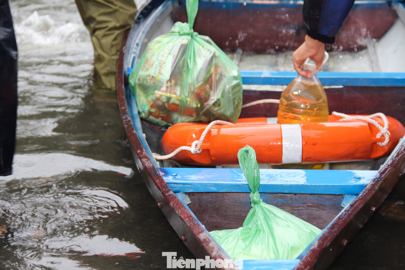 Mỗi chuyến thuyền về không chỉ mang theo thực phẩm của gia đình và còn chở theo nhu yếu phẩm, vật dụng, hàng hóa... mà hàng xóm gửi mua, bà con cùng giúp người dân cầm cự qua những ngày ngập lụt khó khăn.