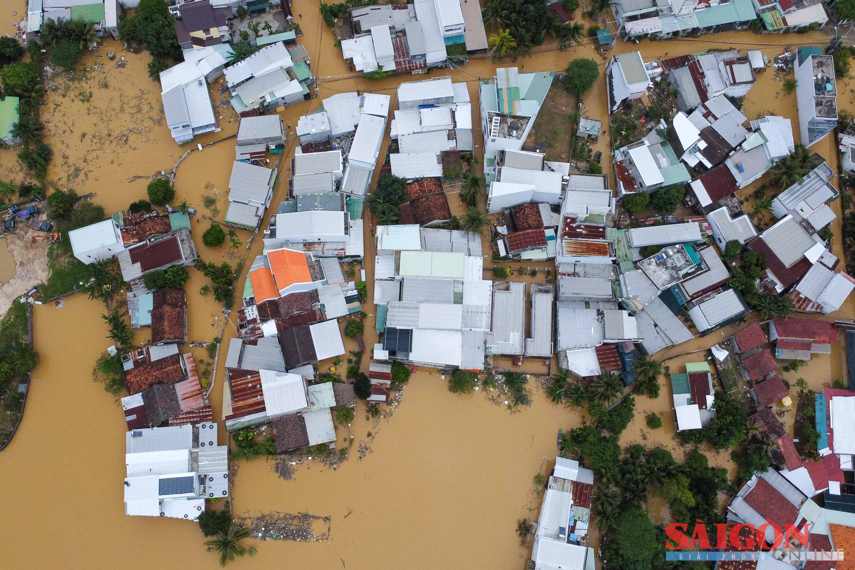 Ngày 4-12, vùng thấp trũng, ven sông Cái Nha Trang có nơi ngập sâu từ 50cm, quá gối do mưa lớn đêm 3-12, nước từ thượng nguồn đổ về. Đến chiều tối cùng ngày, trời vẫn nhiều mây, phủ một màu xám xịt.