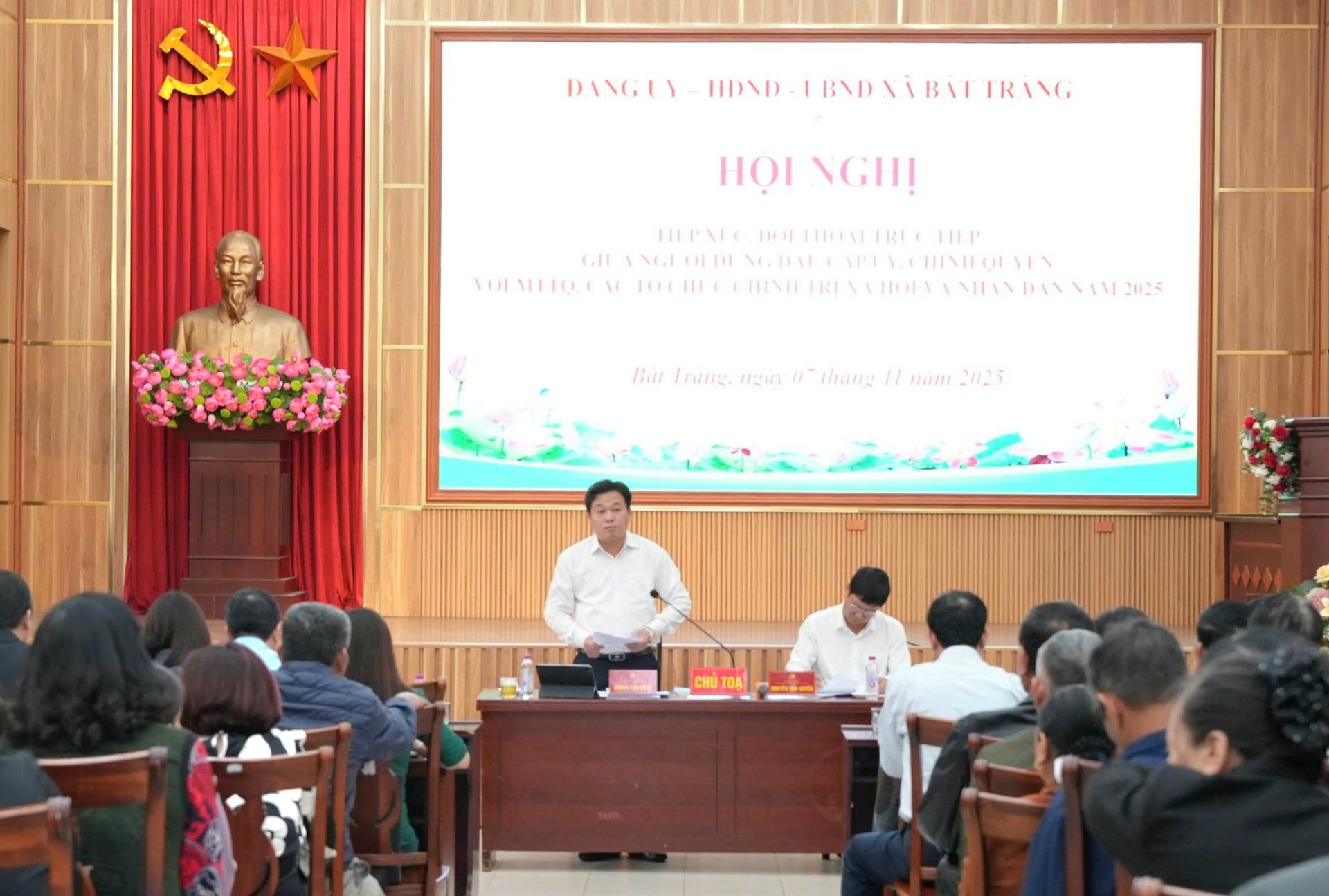 Tại hội nghị, Phó Bí thư Đảng ủy, Chủ tịch UBND xã Bát Tràng Hoàng Tiến Dũng thông tin tới người dân về tình hình phát triển kinh tế - xã hội, an ninh - quốc phòng trên địa bàn xã từ đầu năm đến nay có những kết quả nổi bật: Hệ thống chính trị phát huy hiệu quả mô hình chính quyền địa phương hai cấp; toàn xã đã thành lập 56 chi bộ, Đảng bộ trực thuộc Đảng ủy xã, lập tài khoản sử dụng dịch vụ công trực tuyến của Đảng cho 1.694 đảng viên, đạt 100%; Ủy ban MTTQ và các tổ chức chính trị xã hội hoạt động hiệu quả; thu ngân sách nhà nước đạt 102,5% dự toán giao…