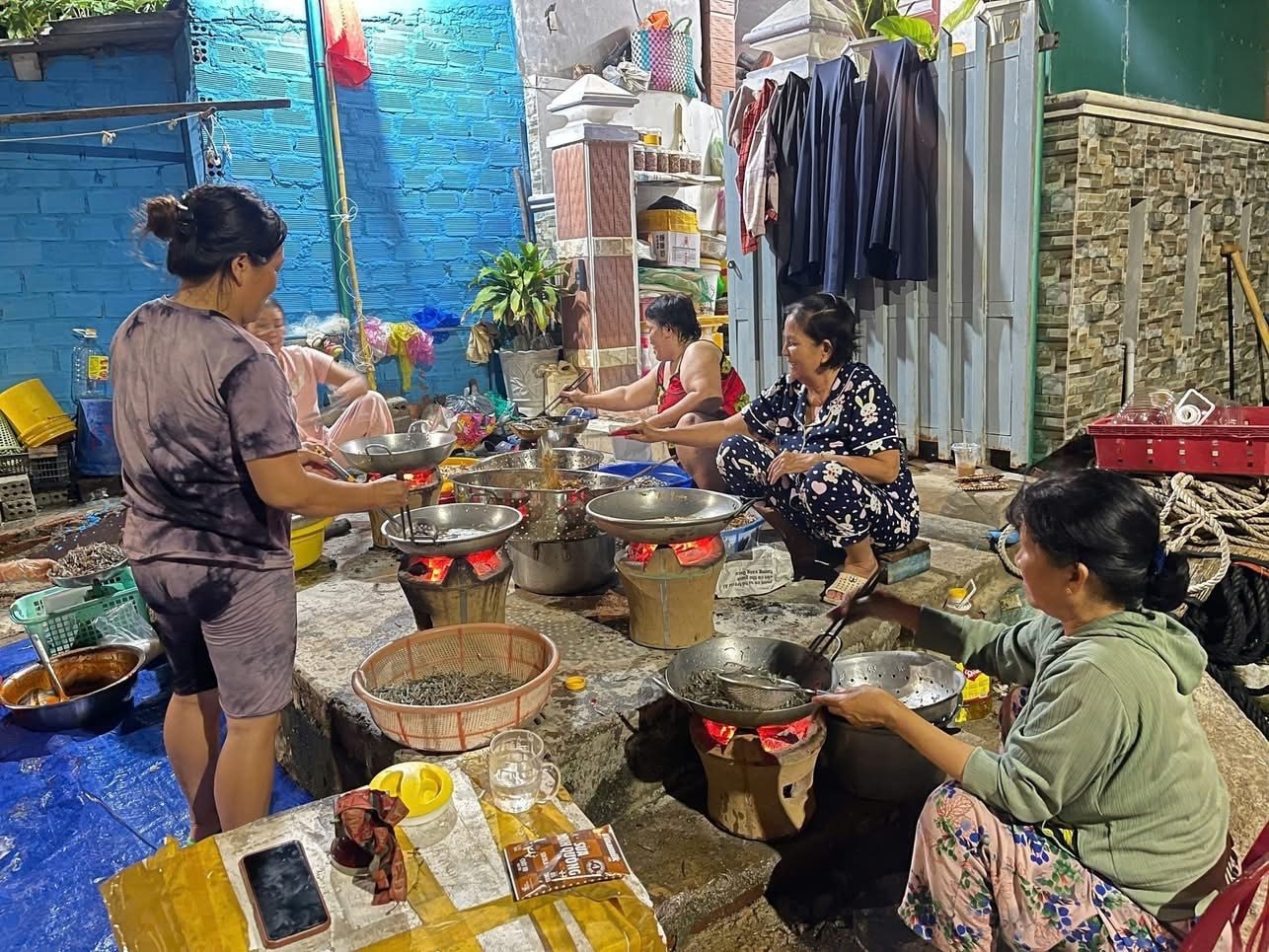 Tại xã đảo Nhơn Châu (Cù Lao Xanh), căn nhà nhỏ của bà Phan Thị Thùy (47 tuổi) trở nên nhộn nhịp khi mọi người tất bật chuẩn bị từng mẻ cá cơm rim, món ăn quen thuộc của người miền biển, để đóng gói gửi đến các tỉnh bị ngập lụt. Bà Thùy cho biết: “Chúng tôi không có nhiều, chỉ mong chút hương vị quê nhà sẽ giúp bà con ấm lòng trong những ngày khó khăn”.