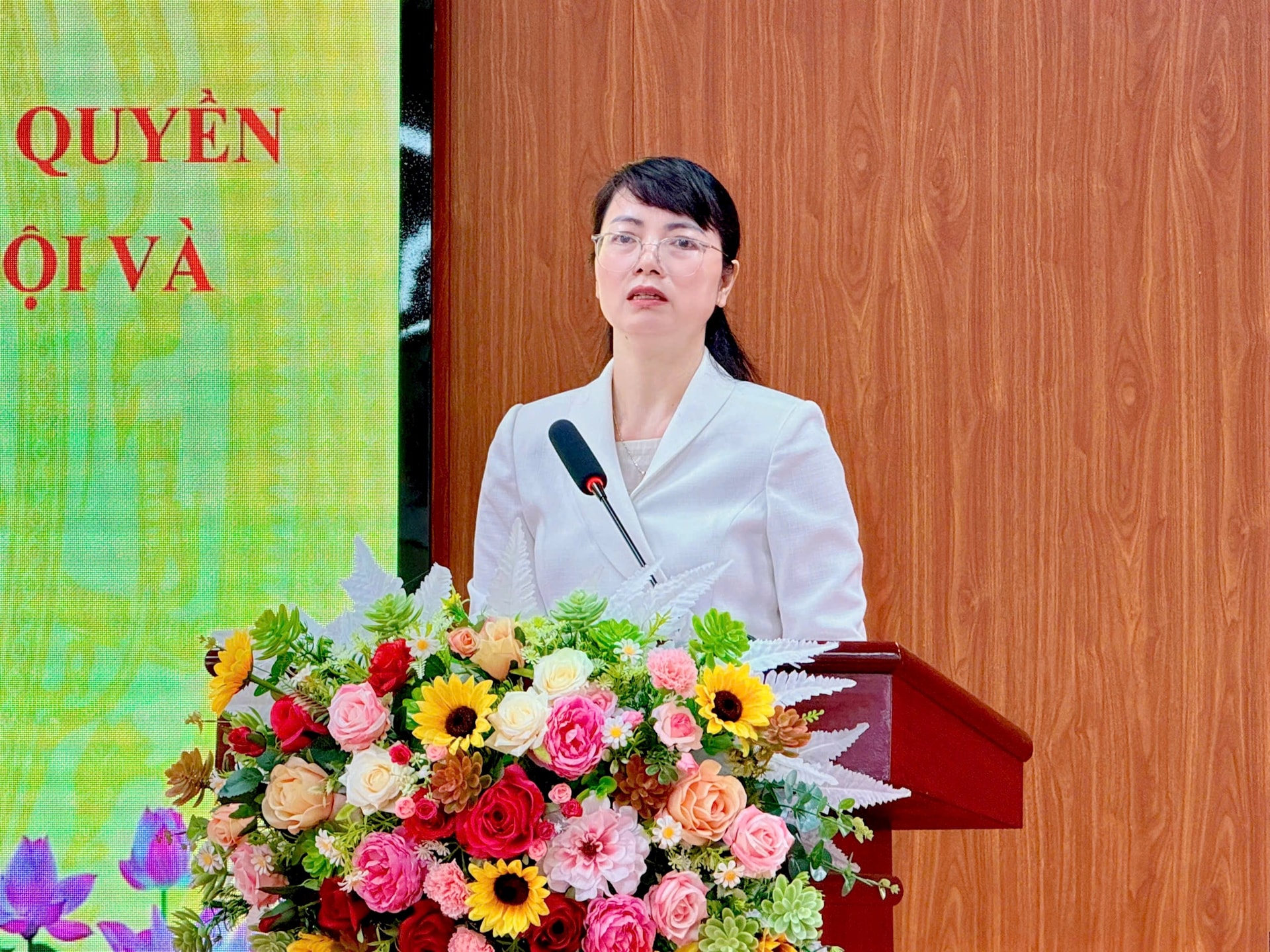Phó Bí thư Đảng ủy, Chủ tịch UBND xã Nam Phù Nguyễn Thị Thu Huyền giải đáp, làm rõ từng nội dung. Ảnh: Phương Xuyến
