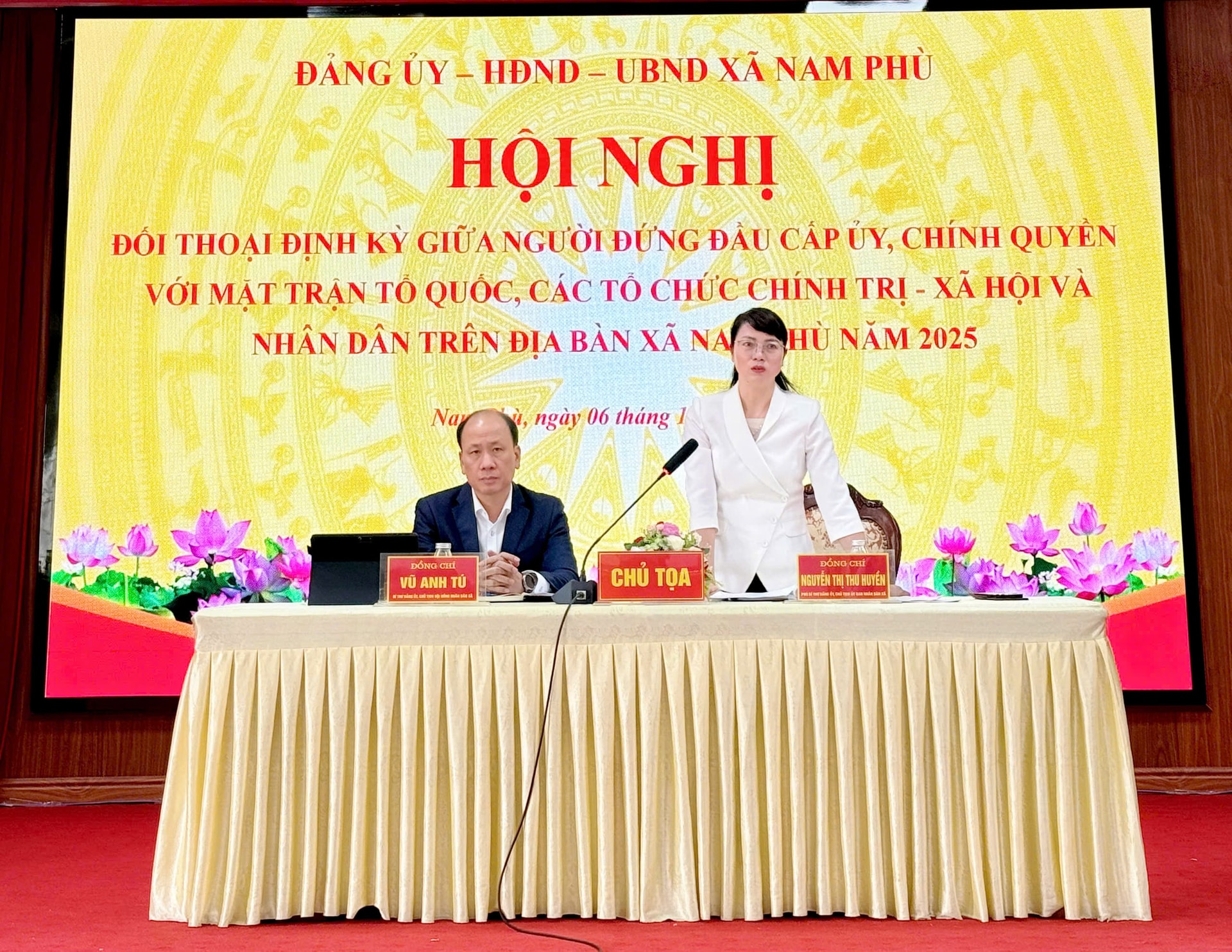 Phó Bí thư Đảng ủy, Chủ tịch UBND xã Nam Phù Nguyễn Thị Thu Huyền trực tiếp giải đáp, làm rõ từng nội dung, đồng thời ghi nhận và giao bộ phận chuyên môn xem xét, giải quyết theo thẩm quyền.