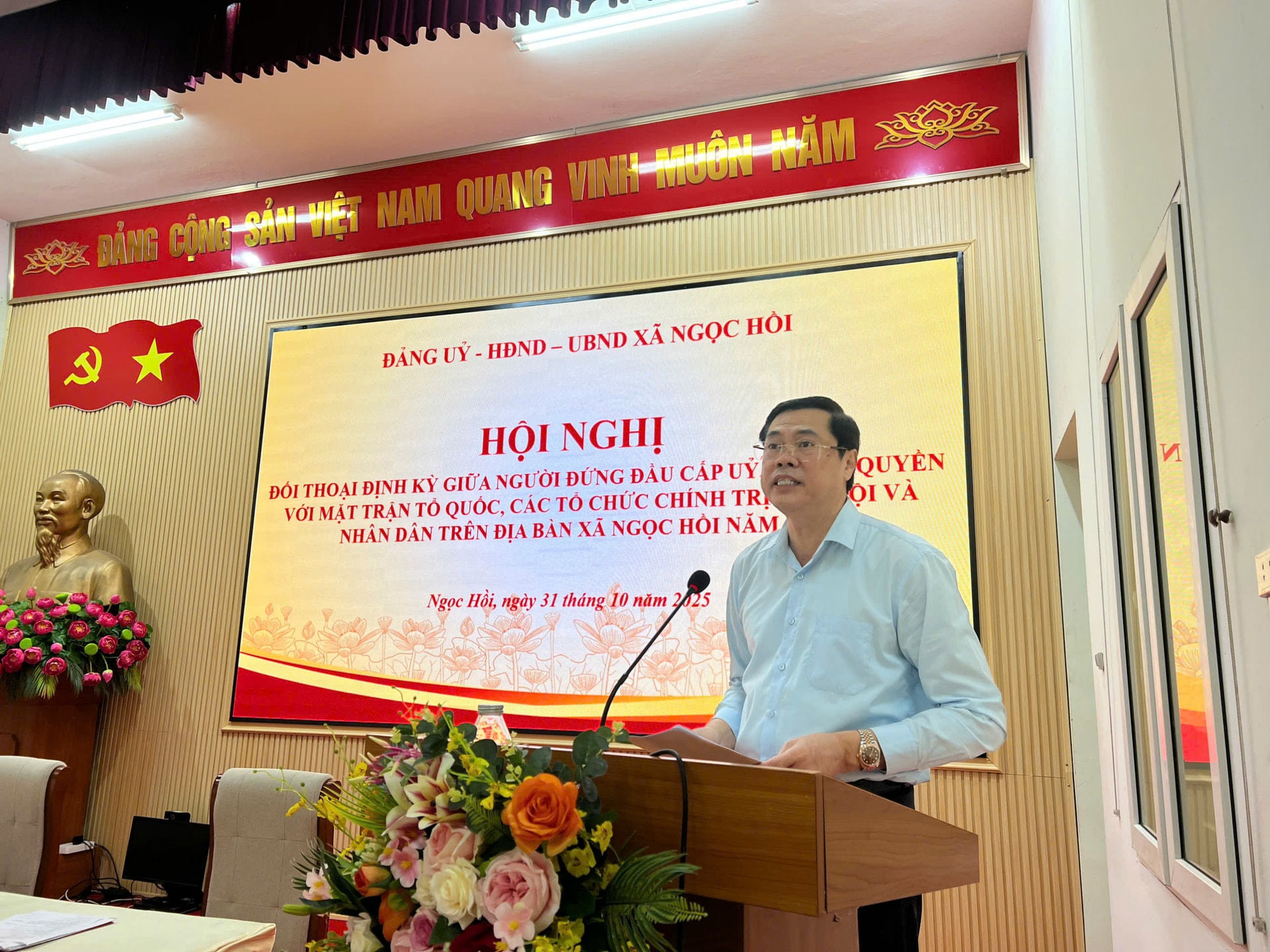 Phát biểu khai mạc, Bí thư Đảng ủy, Chủ tịch HĐND xã Ngọc Hồi Nguyễn Xuân Phong nhấn mạnh, Hội nghị đối thoại là diễn đàn dân chủ, thể hiện tinh thần cầu thị, lắng nghe và tiếp thu ý kiến nhân dân từ người đứng đầu cấp ủy, chính quyền.