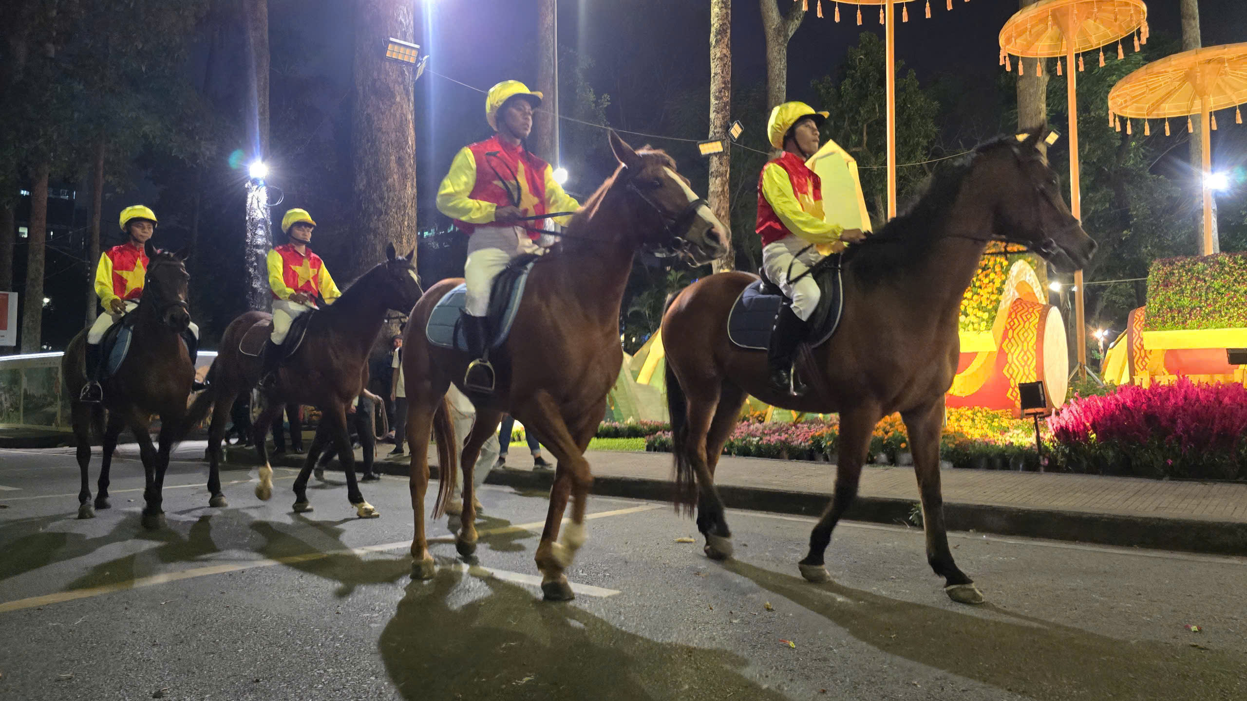 Tối 12/2, Hội hoa xuân TP.HCM lần thứ 46 khai mạc tại Công viên Tao Đàn, quy tụ nhiều “kỳ hoa dị thảo” khắp mọi miền đất nước. Điểm khác biệt so với mọi năm và cũng là điểm nhấn độc đáo, thu hút du khách nhất là sự xuất hiện của dàn ngựa đua thuần chủng.