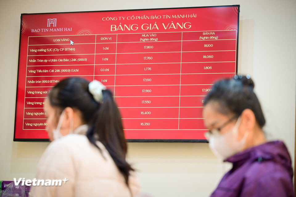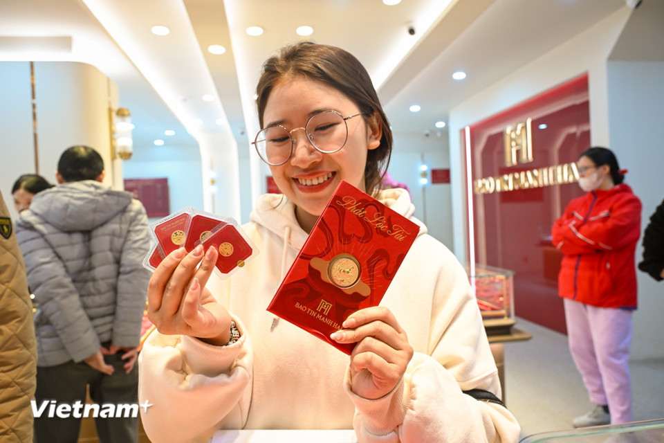 Ở Việt Nam, việc mua vàng dịp cuối năm vốn đã trở thành thói quen lâu đời, gắn với quan niệm tích lộc, cầu may và giữ tài sản cho năm mới. Khi giá vàng tăng mạnh, tâm lý 'sợ lỡ cơ hội' càng thúc đẩy nhu cầu mua sớm. (Ảnh: Minh Sơn/Vietnam+)