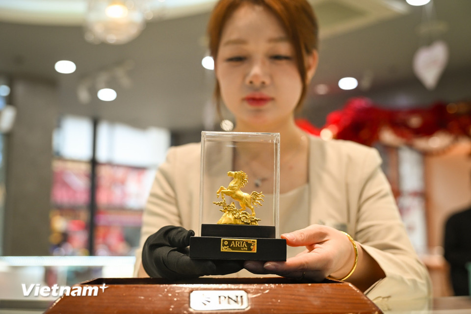 Bước vào cao điểm mua sắm Tết 2026, nhiều sản phẩm vàng linh vật Ngựa Bính Ngọ được PNJ giới thiệu. (Ảnh: Minh Sơn/Vietnam+)
