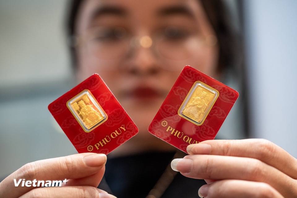 Ngoài ra, trong bối cảnh thị trường tài chính toàn cầu nhiều biến động, vàng tiếp tục được xem là kênh trú ẩn an toàn. Điều này khiến người dân sẵn sàng chấp nhận mức giá cao và chênh lệch lớn so với thị trường quốc tế. (Ảnh: Minh Sơn/Vietnam+)