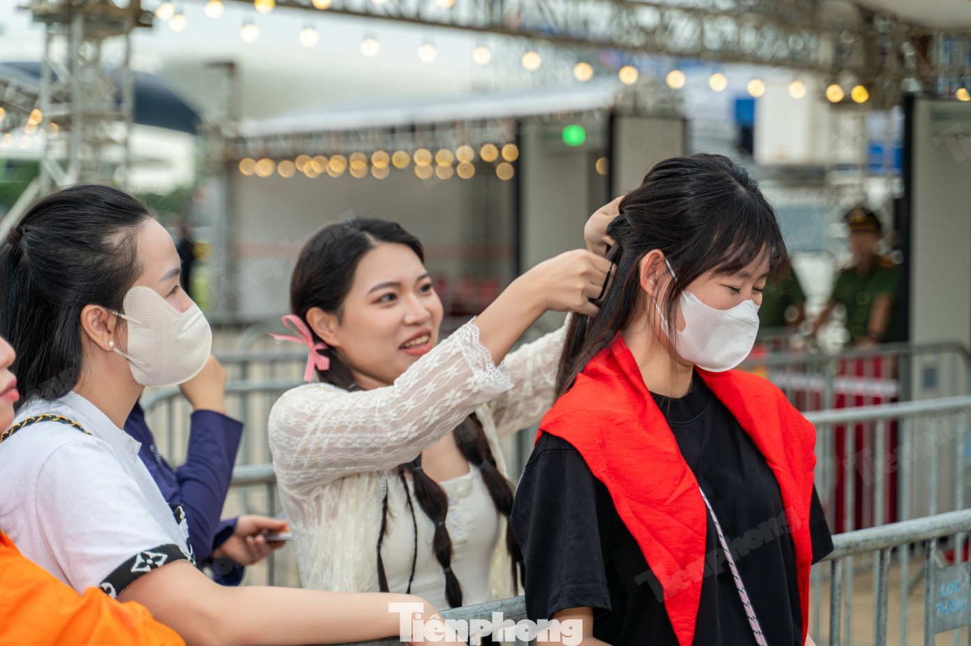 Trước giờ vào khán đài, một số bạn trẻ tranh thủ trang điểm, làm đẹp để gặp thần tượng của mình.