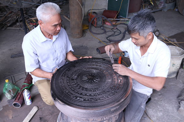 Niềm hạnh phúc lớn nhất của Nghệ nhân Nguyễn Bá Châu là đã truyền cảm hứng nghệ thuật đúc trống đồng cho chính người con trai của mình
