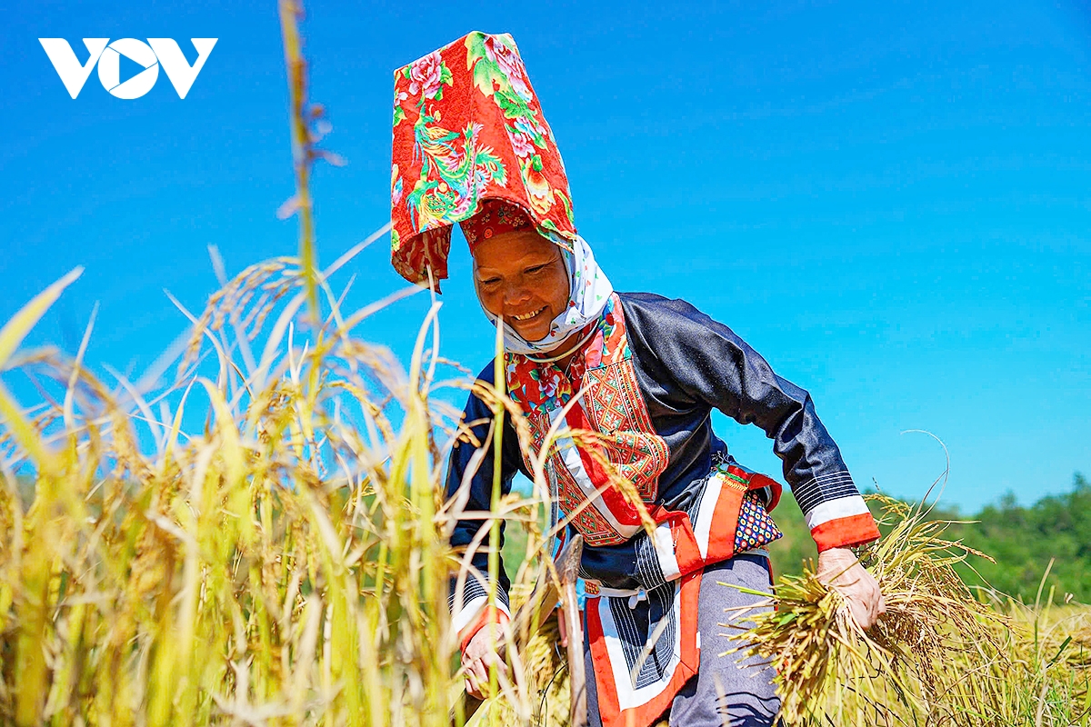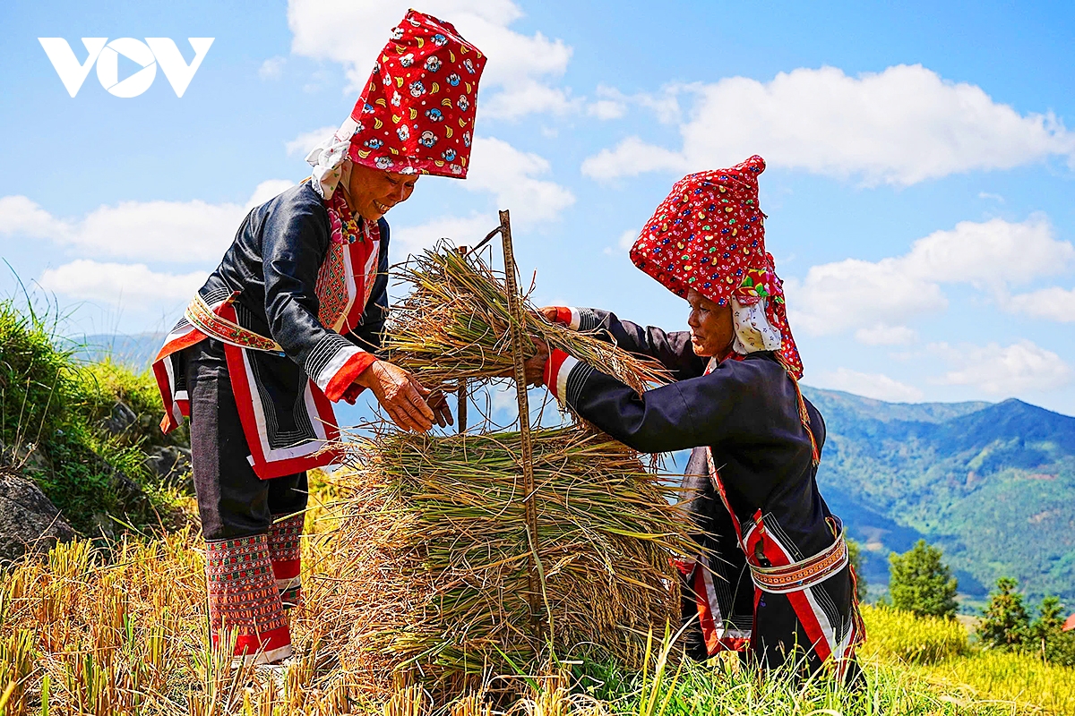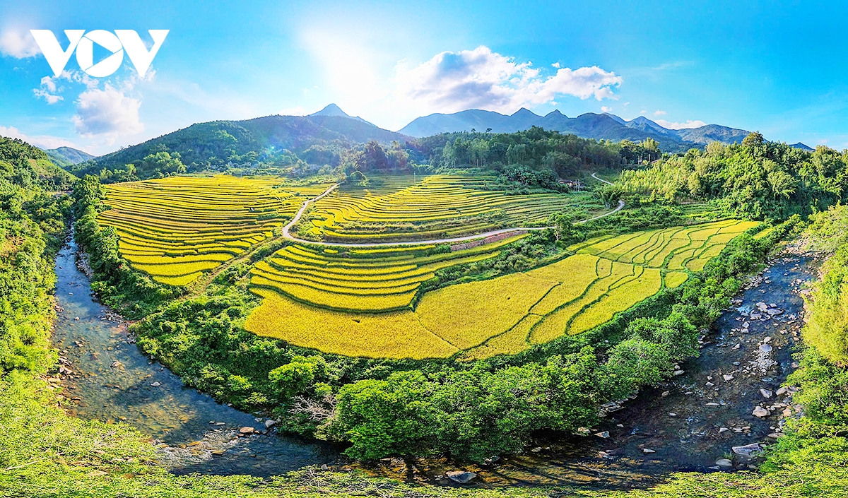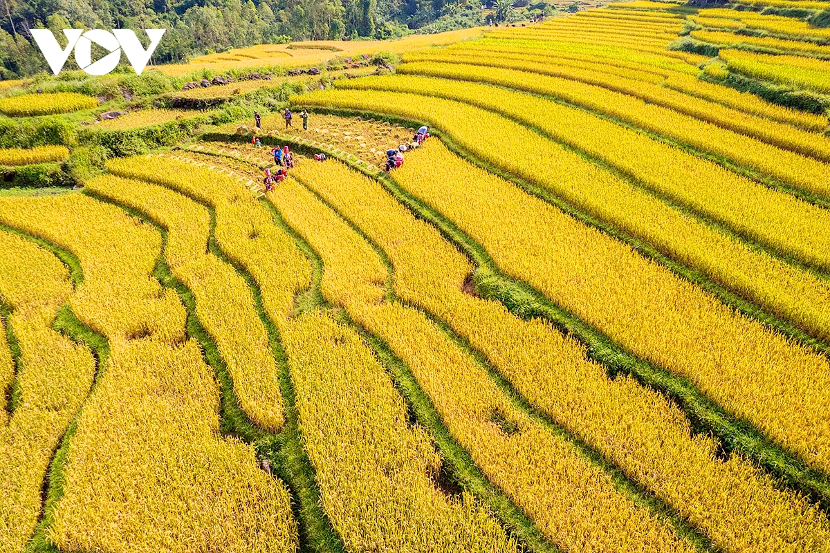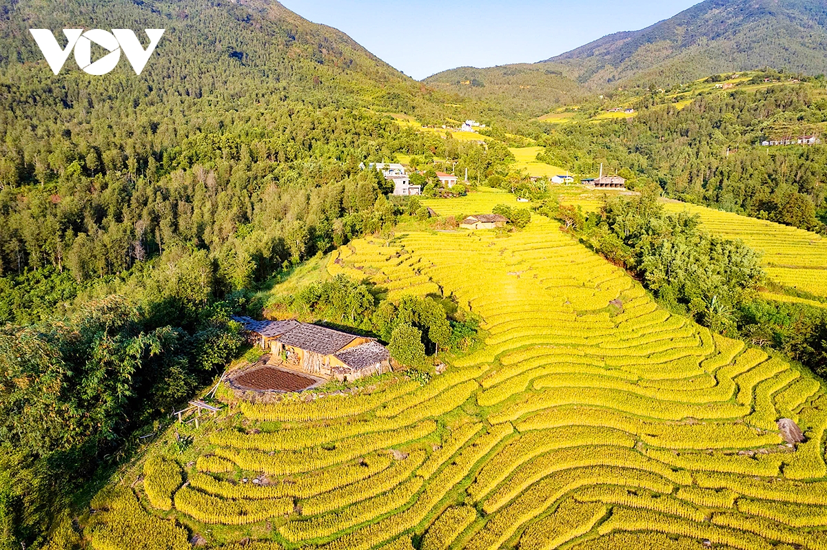 Trên những triền đồi và dưới các thung lũng, sắc vàng của lúa chín trải dài, lượn sóng trên các ruộng bậc thang hòa quyện cùng màu xanh bất tận của rừng hồi, quế, tạo nên vẻ đẹp khiến bất kỳ ai cũng phải dừng chân chiêm ngưỡng