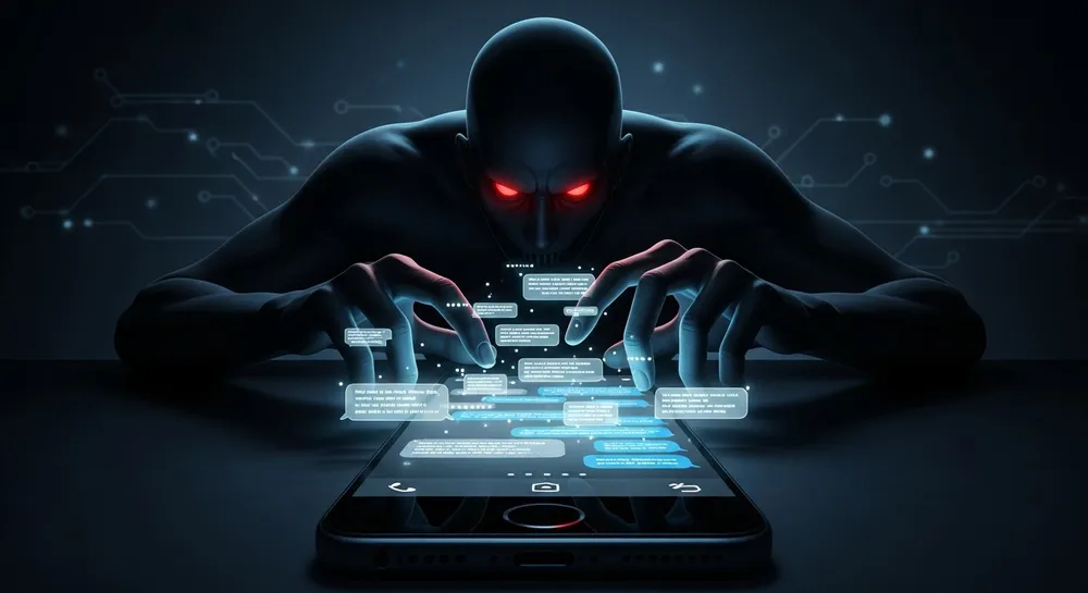 Phần mềm gián điệp có khả năng vượt qua lớp mã hóa, đọc lén tin nhắn của người dùng iPhone và Android. Ảnh minh họa: AI