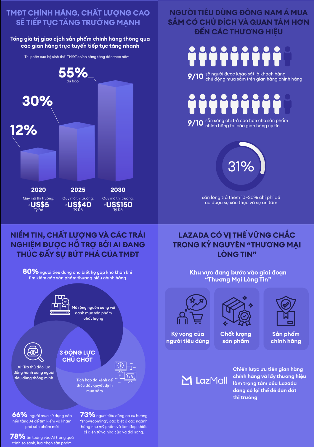 Báo cáo "Sự trỗi dậy của hệ sinh thái các gian hàng chính hãng tại Đông Nam Á" do Cube Asia thực hiện và Lazada công bố ngày 27/11 chỉ ra sự chuyển dịch mạnh mẽ trong hành vi mua sắm khu vực.