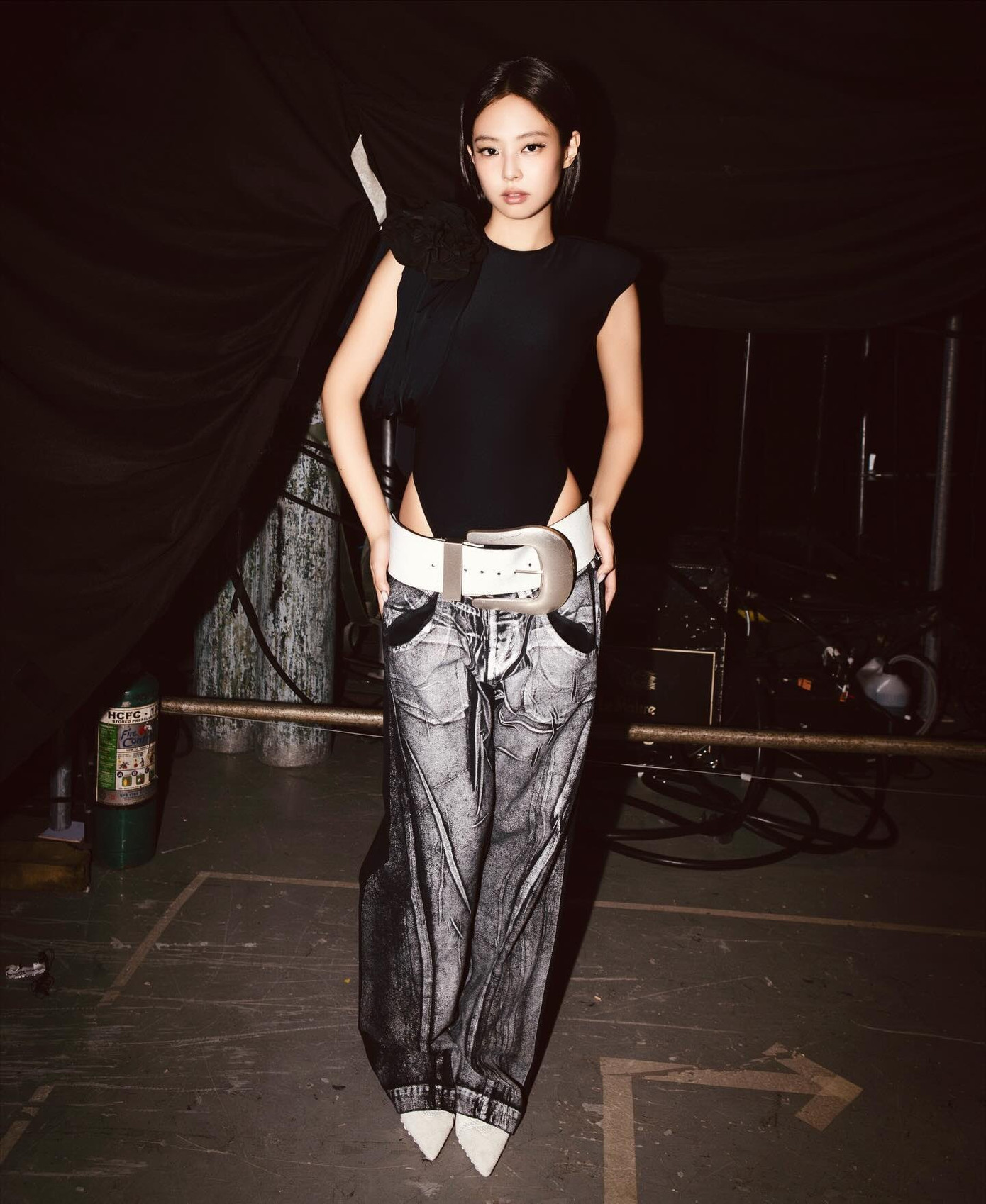 Một trong những tạo hình đáng nhớ nhất tại chặng châu Á là bộ cánh "girl phố" trong đêm thứ hai . Nữ idol "mở khóa" kho lưu trữ của nhà mốt Chanel, phối set bikini 30 năm tuổi cùng quần jeans cạp trễ táo bạo. Hay mới đây, dừng chân tại Philippines, Jennie "tuyệt đối điện ảnh" trong , là thiết kế custom từ Robert Wun.