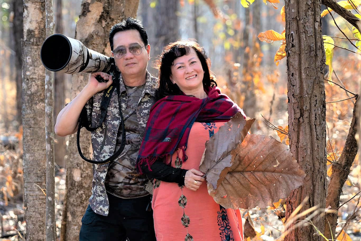 Ông Nguyễn Thanh Liêm và vợ trong một chuyến đi săn hình chim