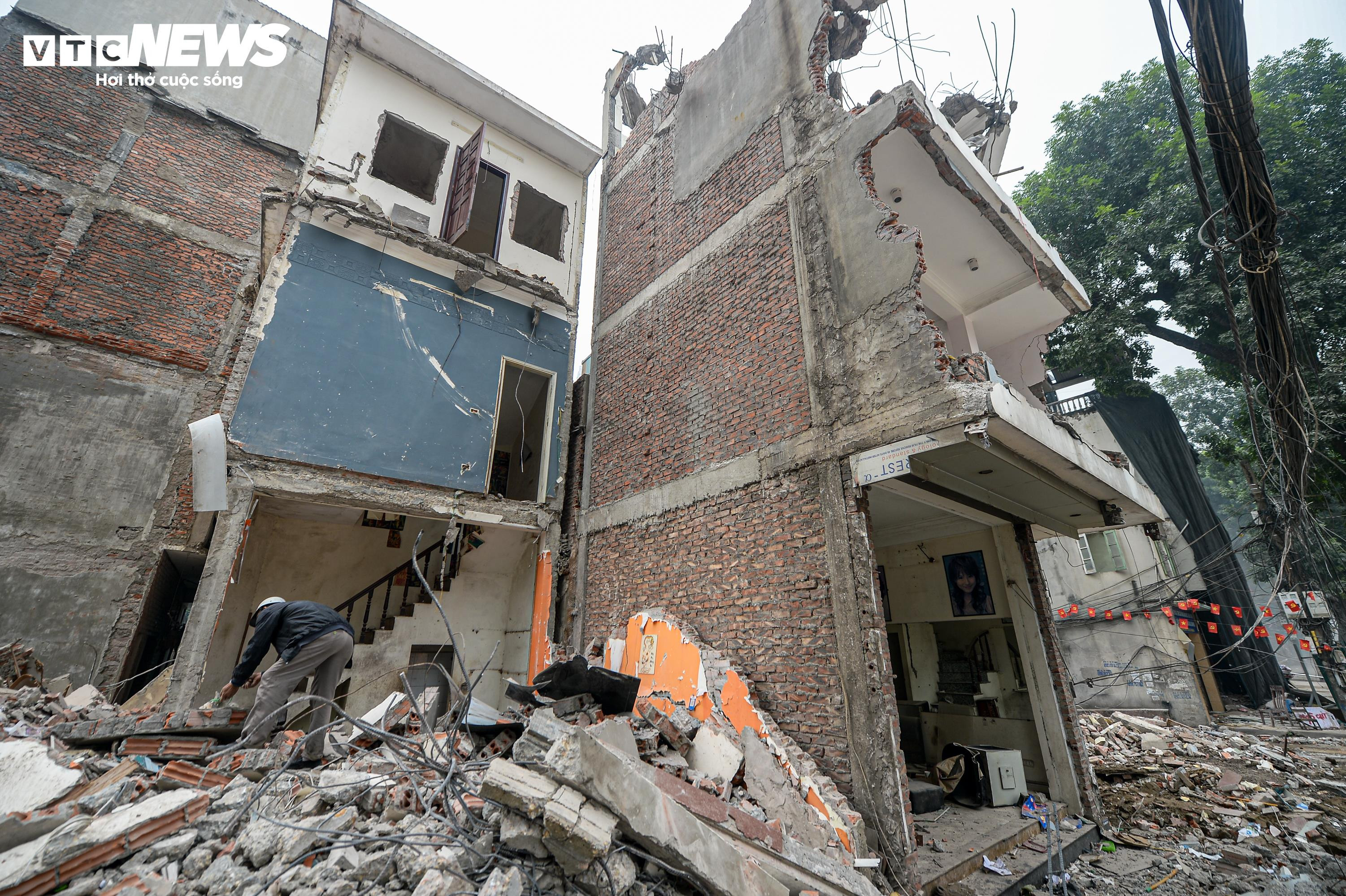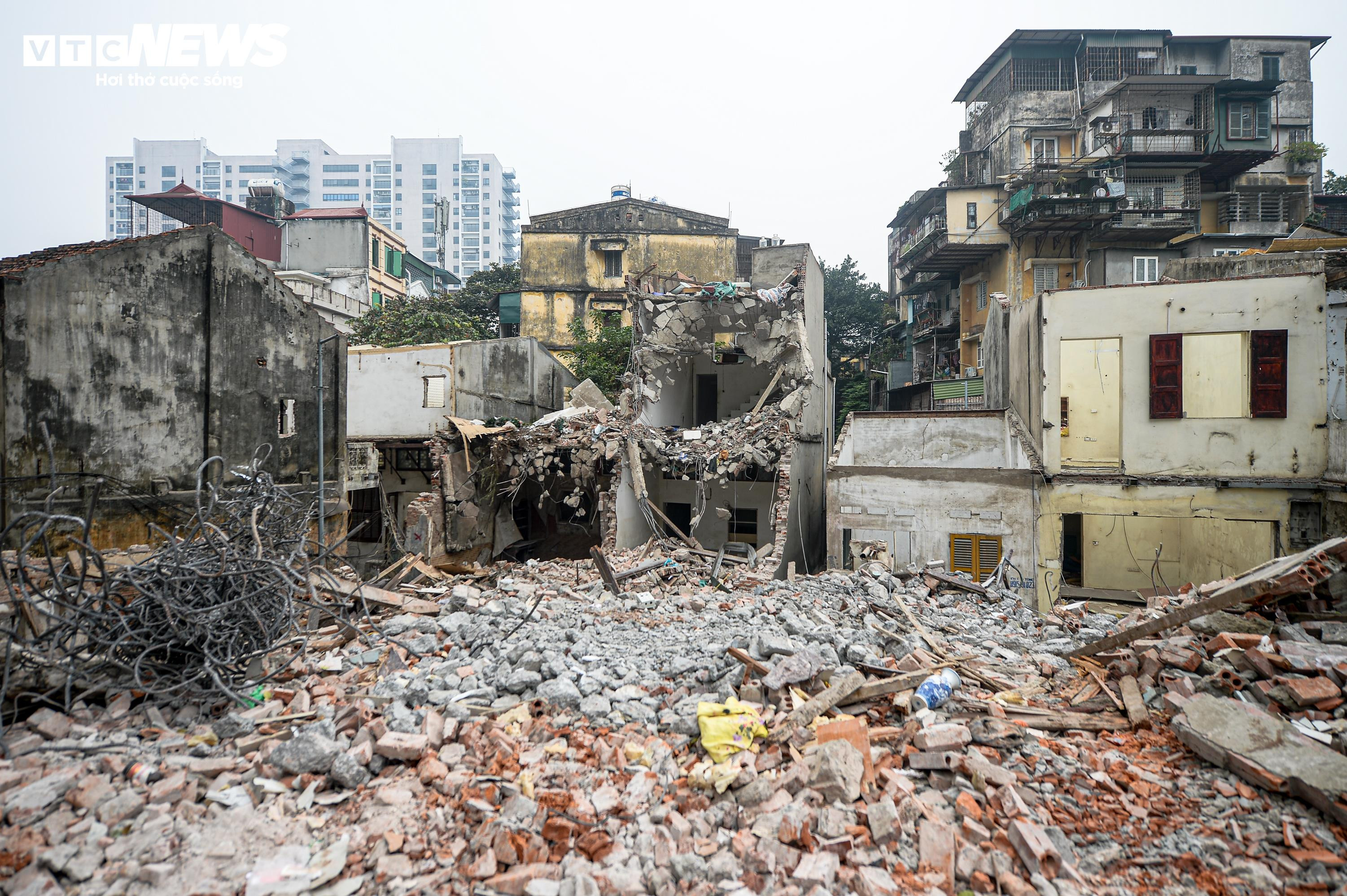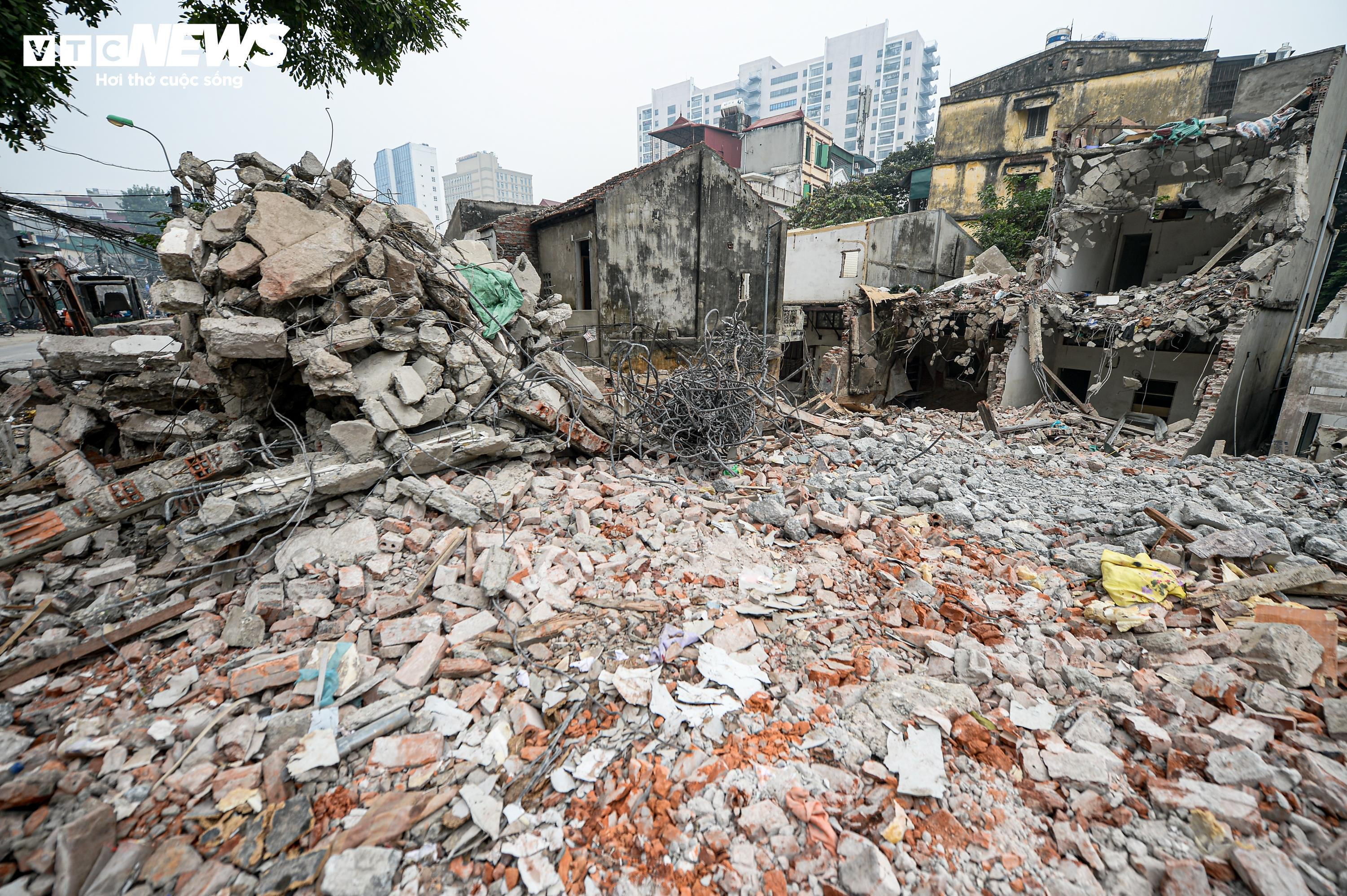 Sau khi các căn nhà được tháo dỡ, từng mảng bê tông, gạch vỡ và những thanh sắt lộ ra, nằm ken dọc tuyến phố Đê La Thành.