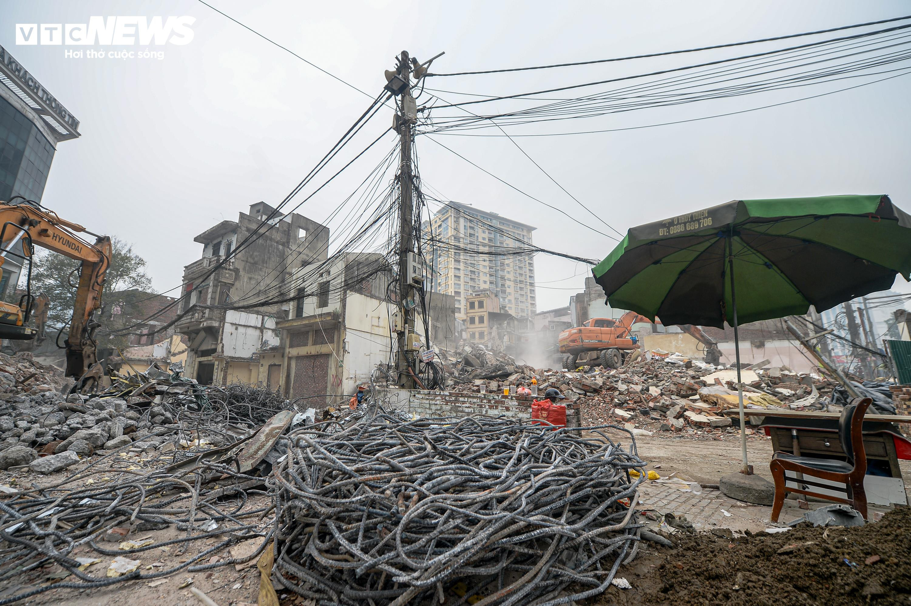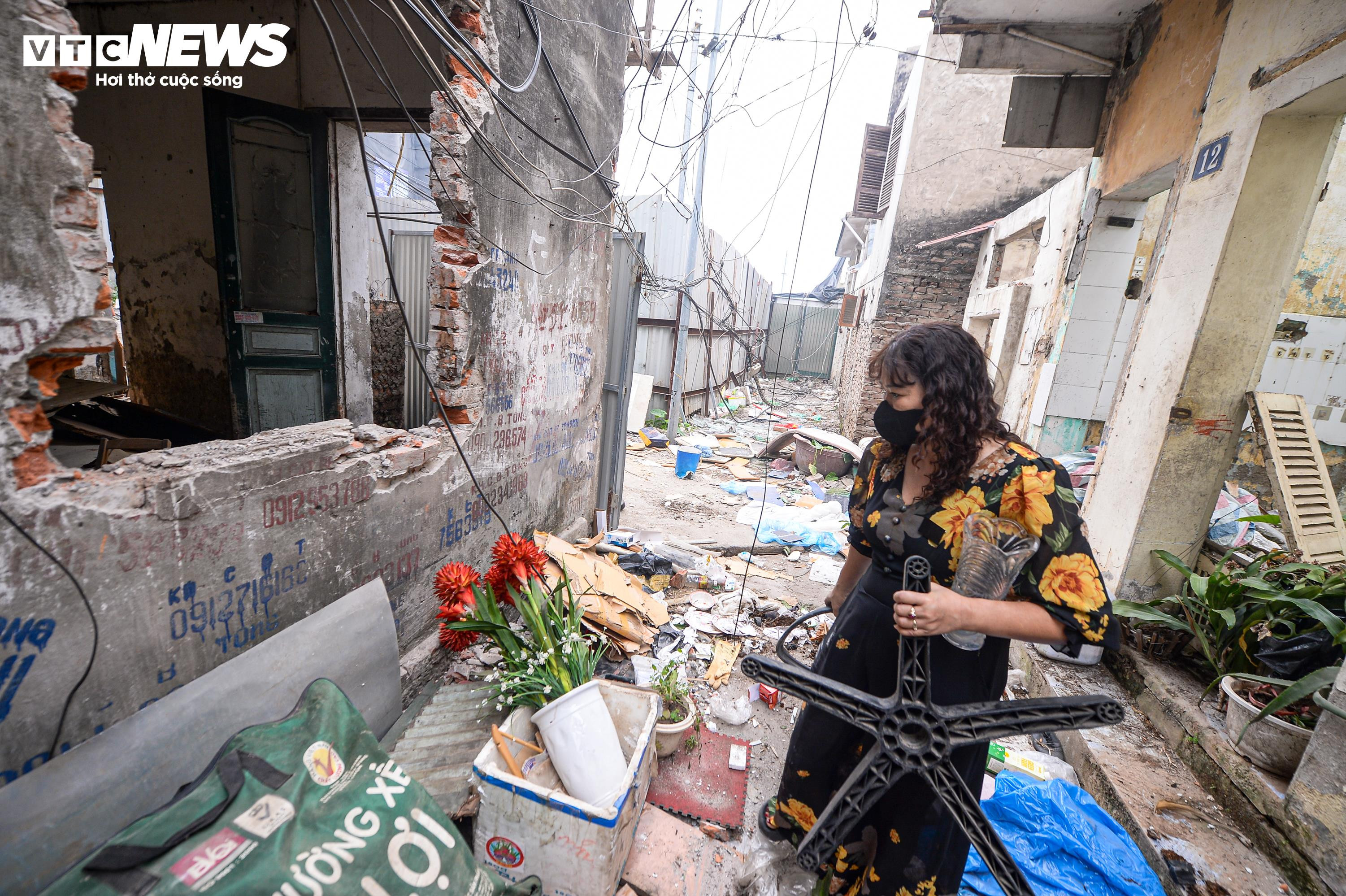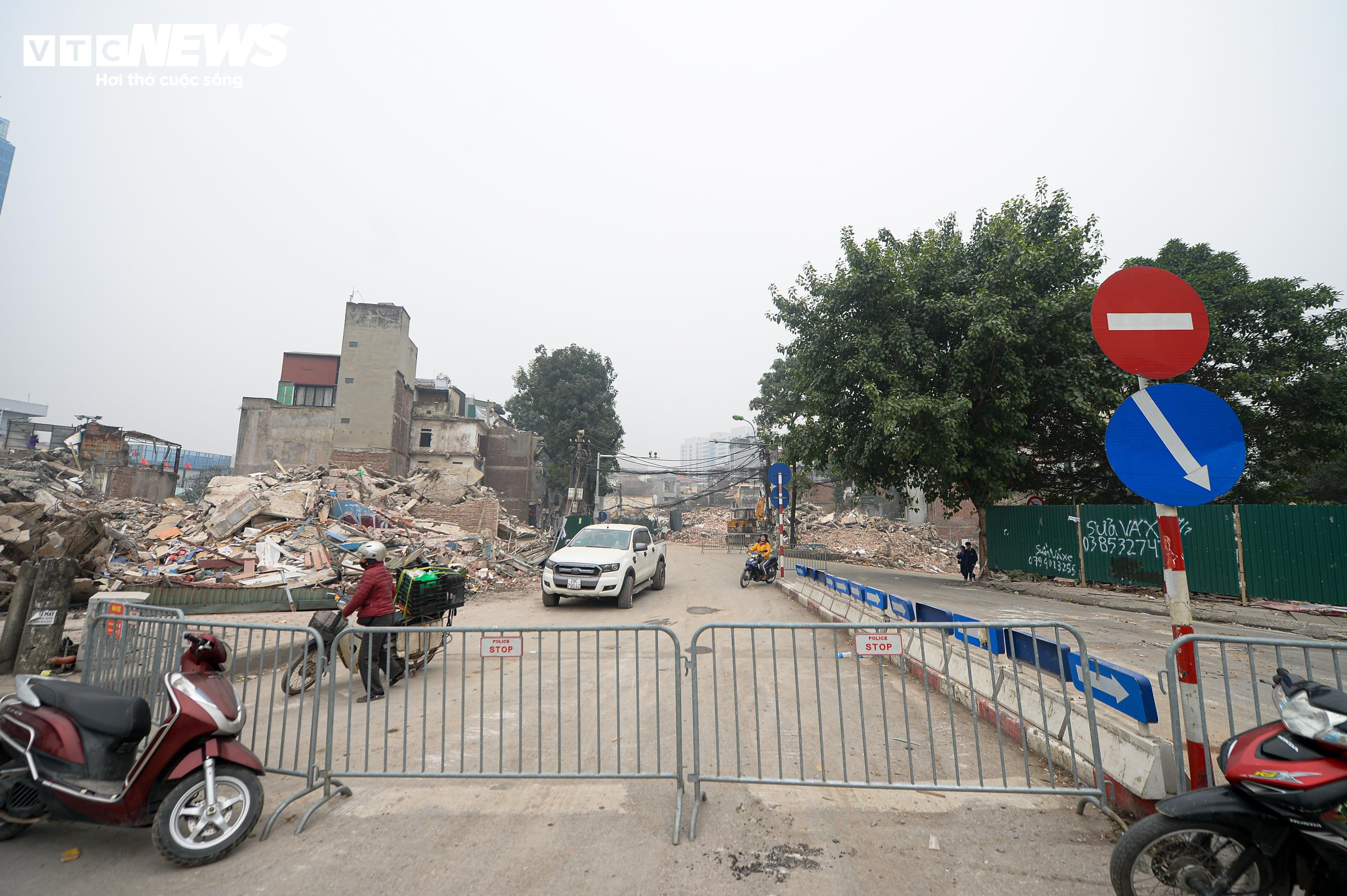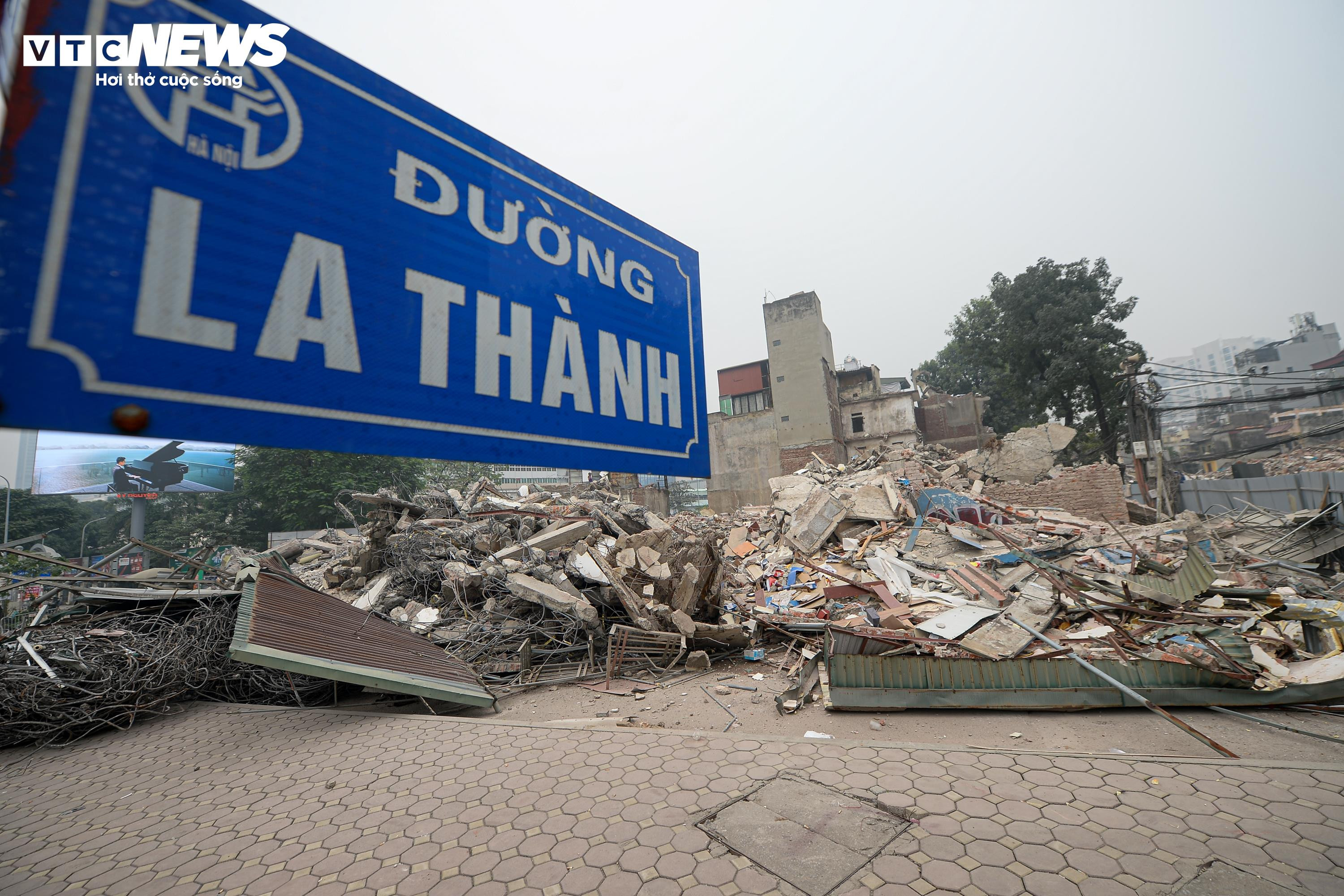 Sau khi các căn nhà được tháo dỡ, từng mảng bê tông, gạch vỡ và những thanh sắt lộ ra, nằm ken dọc tuyến phố Đê La Thành.