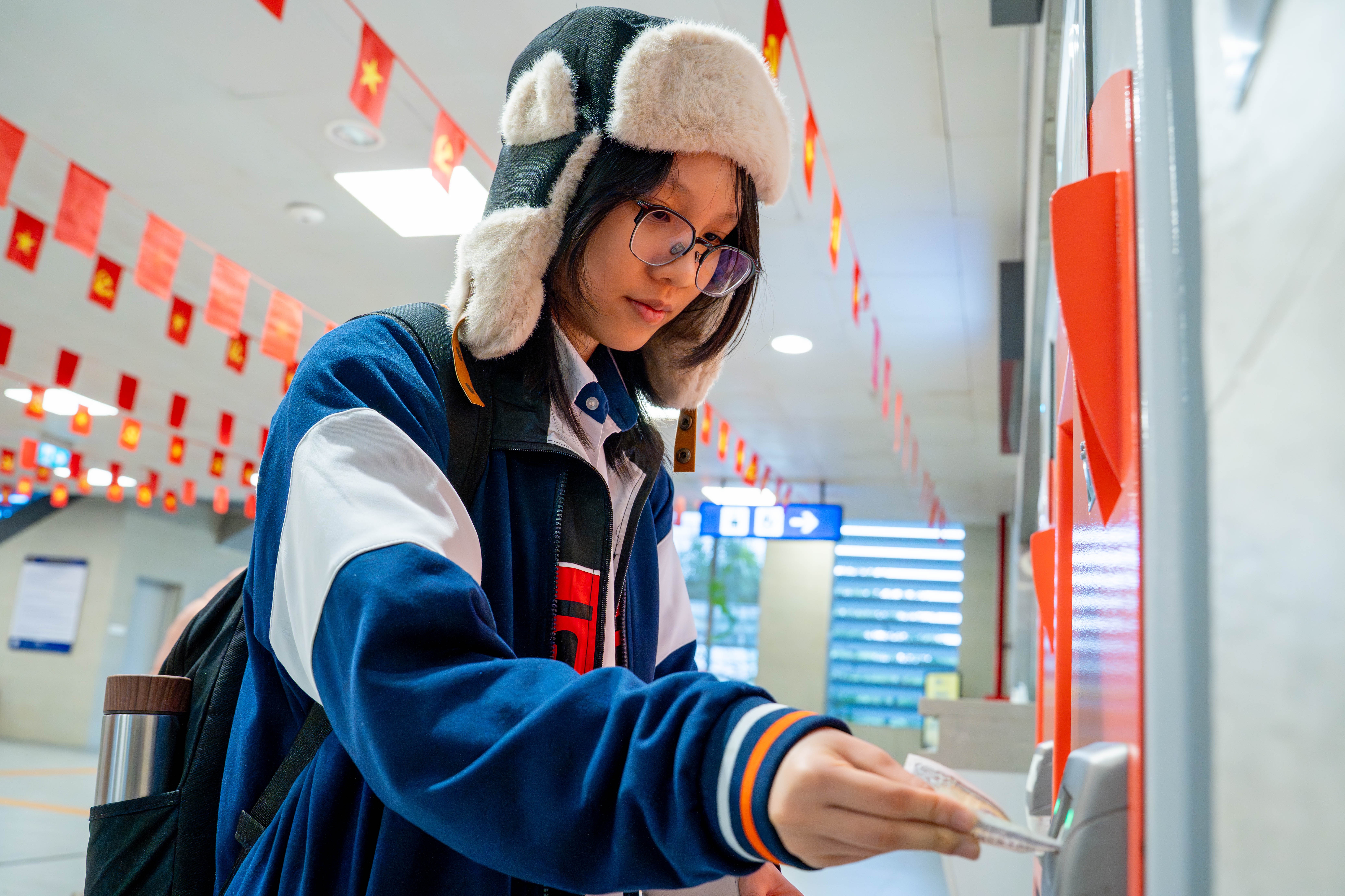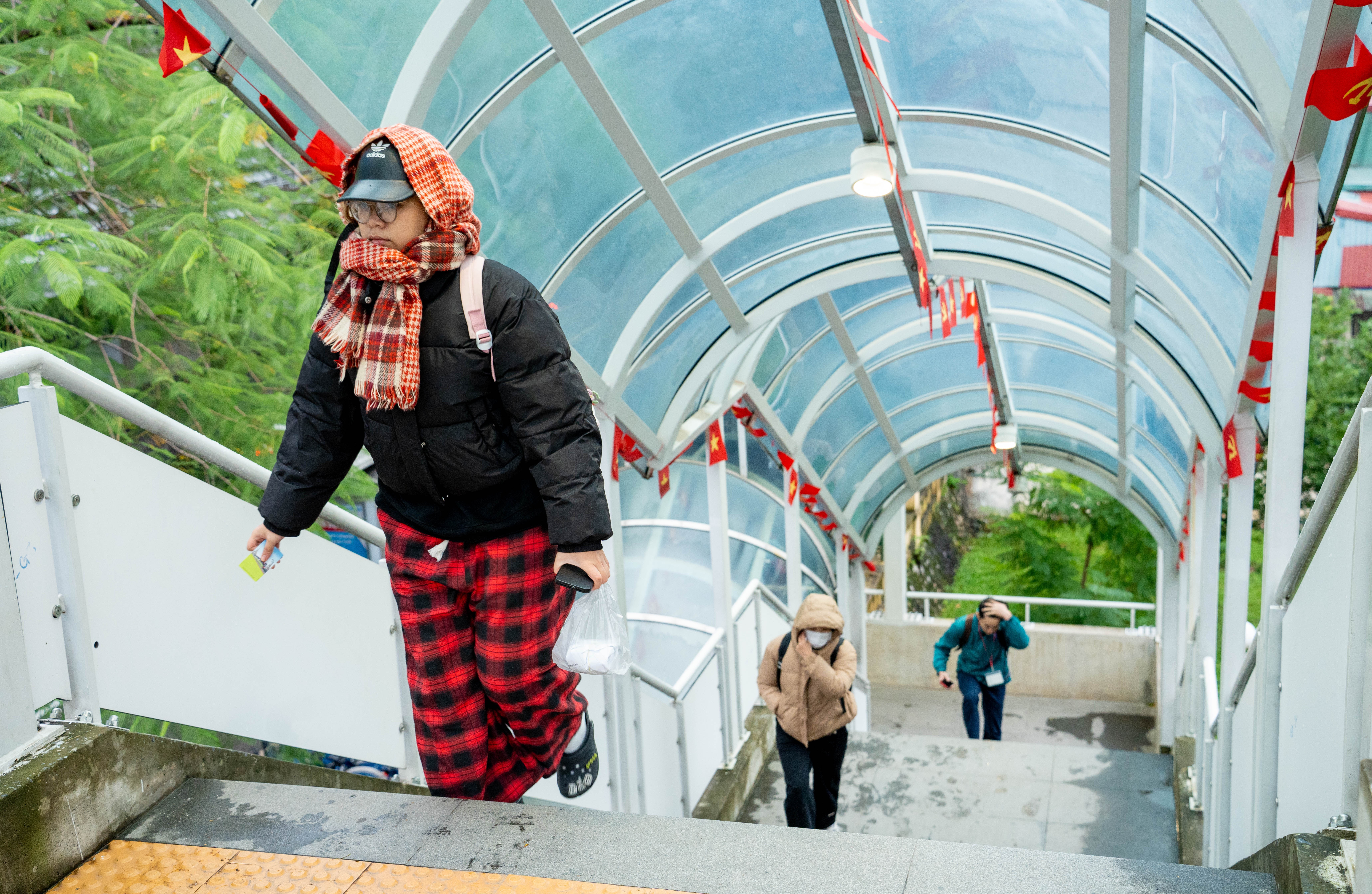 "Bình thường tôi đi học bằng xe máy nhưng bắt đầu trời trở lạnh, tôi quyết định đi tàu cho đỡ tắc đường, di chuyển nhanh và cũng giữ ấm cho bản thân", Mai Phương Nga (21 tuổi, Mai Dịch) chia sẻ.