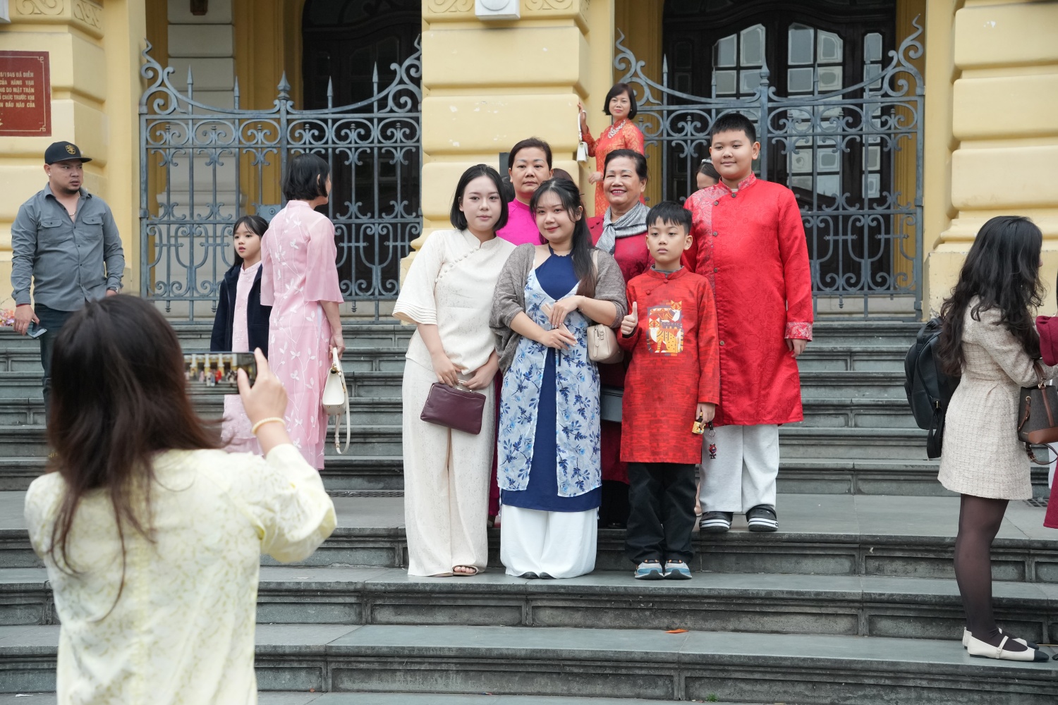 Ở khu vực Quảng trường Ba Đình, nhiều nhóm bạn trẻ lựa chọn áo dài đồng bộ để chụp ảnh kỷ niệm. Không chỉ là hoạt động mang tính hình thức, việc “tân trang” áo dài ngày Tết còn cho thấy xu hướng quay trở lại với giá trị cốt lõi - đề cao sự thanh lịch, nền nã và tinh thần gia đình.