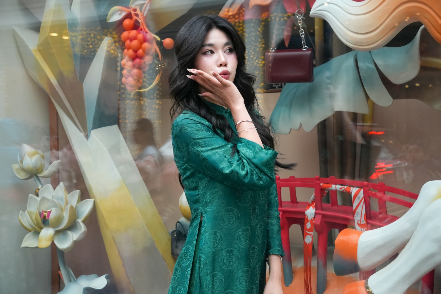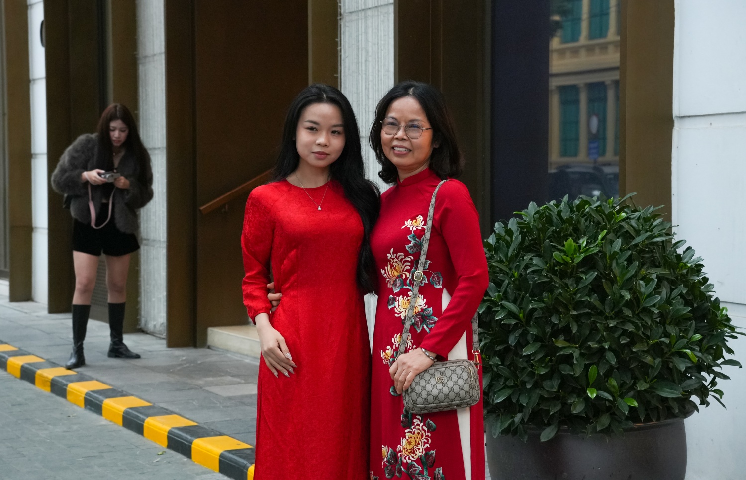Tại Văn Miếu - Quốc Tử Giám và Hoàng thành Thăng Long, hình ảnh áo dài càng trở nên nổi bật giữa nền kiến trúc cổ kính. Những tà áo bay nhẹ trong gió xuân như gợi nhắc chiều sâu lịch sử nghìn năm văn hiến, đồng thời khẳng định sức sống bền bỉ của văn hóa truyền thống trong đời sống đương đại.