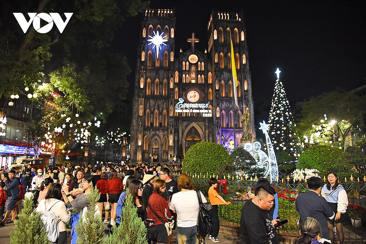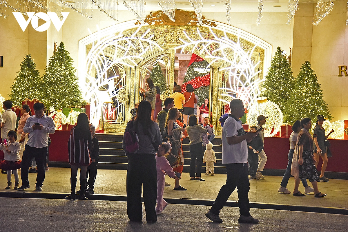 Rất đông người dân, du khách đến Nhà thờ Lớn check-in kỷ niệm với hình tượng cây thông Noel.