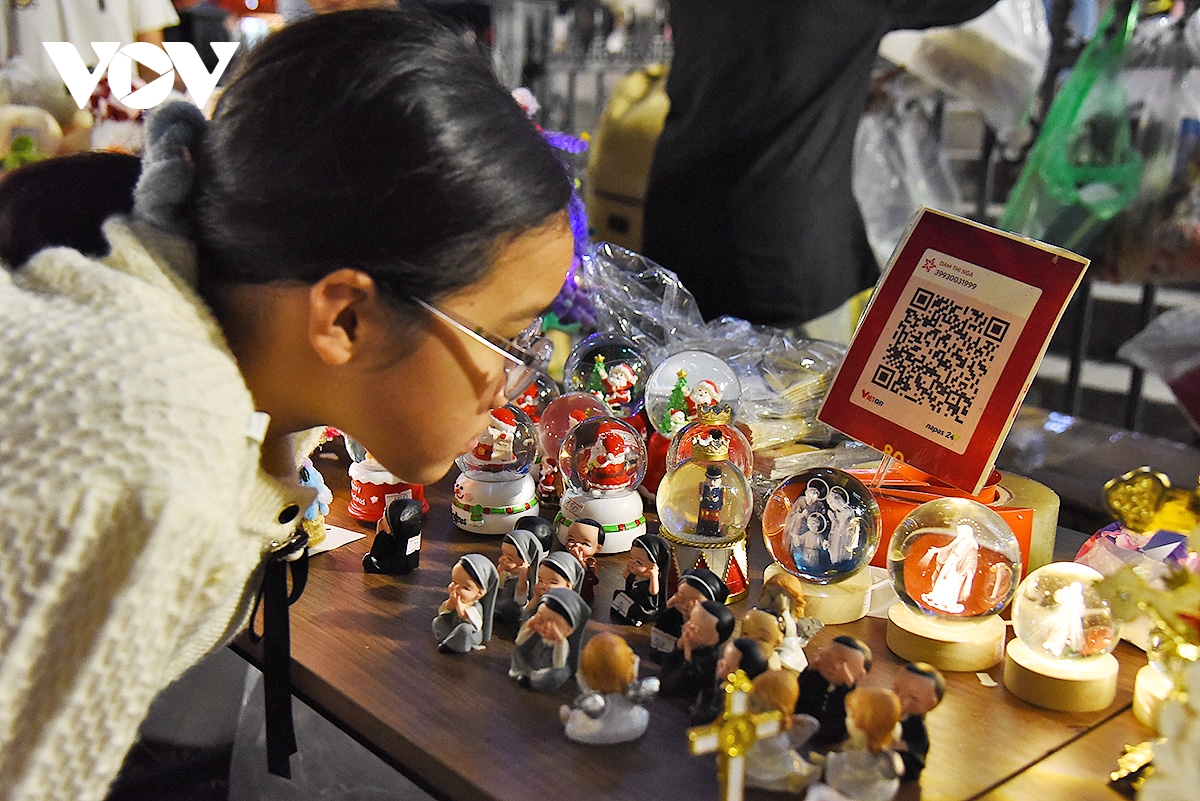Nhiều gia đình tới khu vực nhà thờ để mua đồ trang trí cây thông Noel cho gia đình và những món đồ phụ kiện dùng đêm Noel.