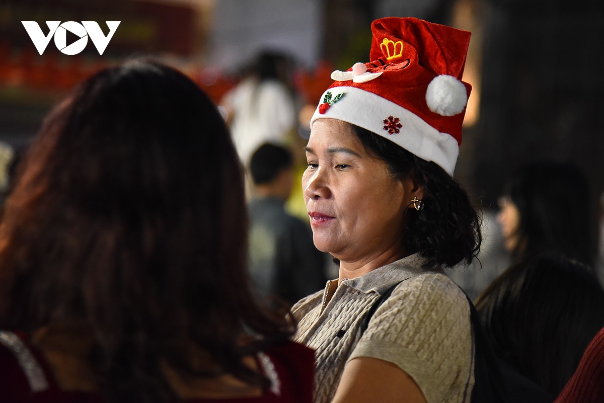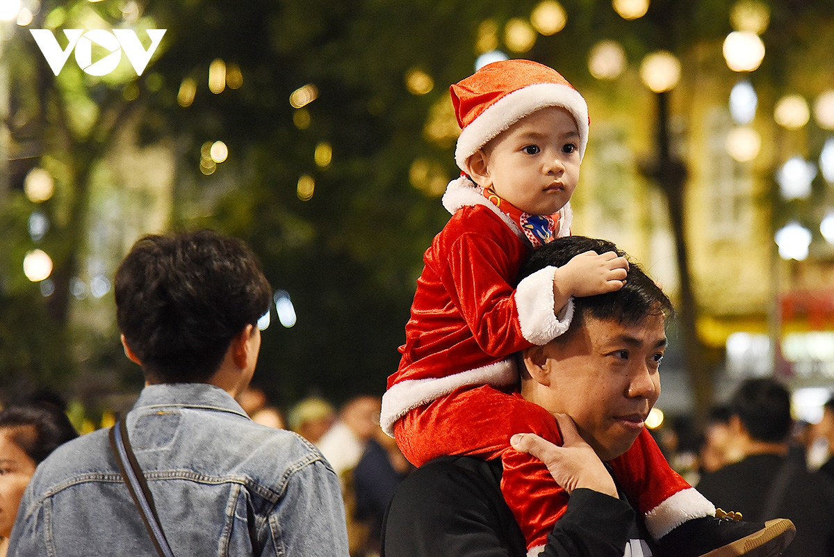 Người dân với trang phục Noel trên phố đi bộ Hồ Gươm.