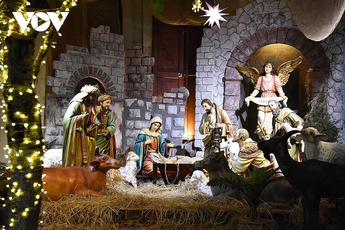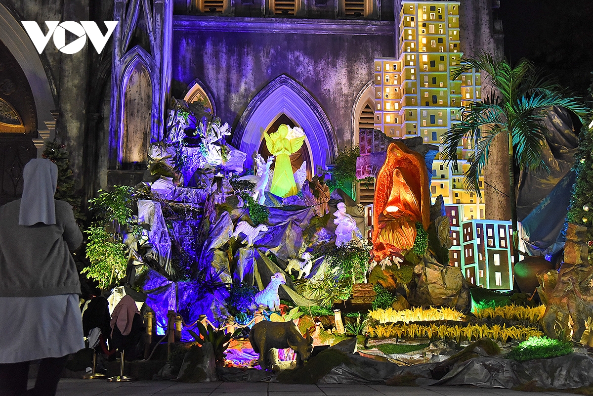 Trang trí đẹp lung linh trước nhà thờ hấp dẫn nhiều người dân, du khách tham quan, chụp ảnh.