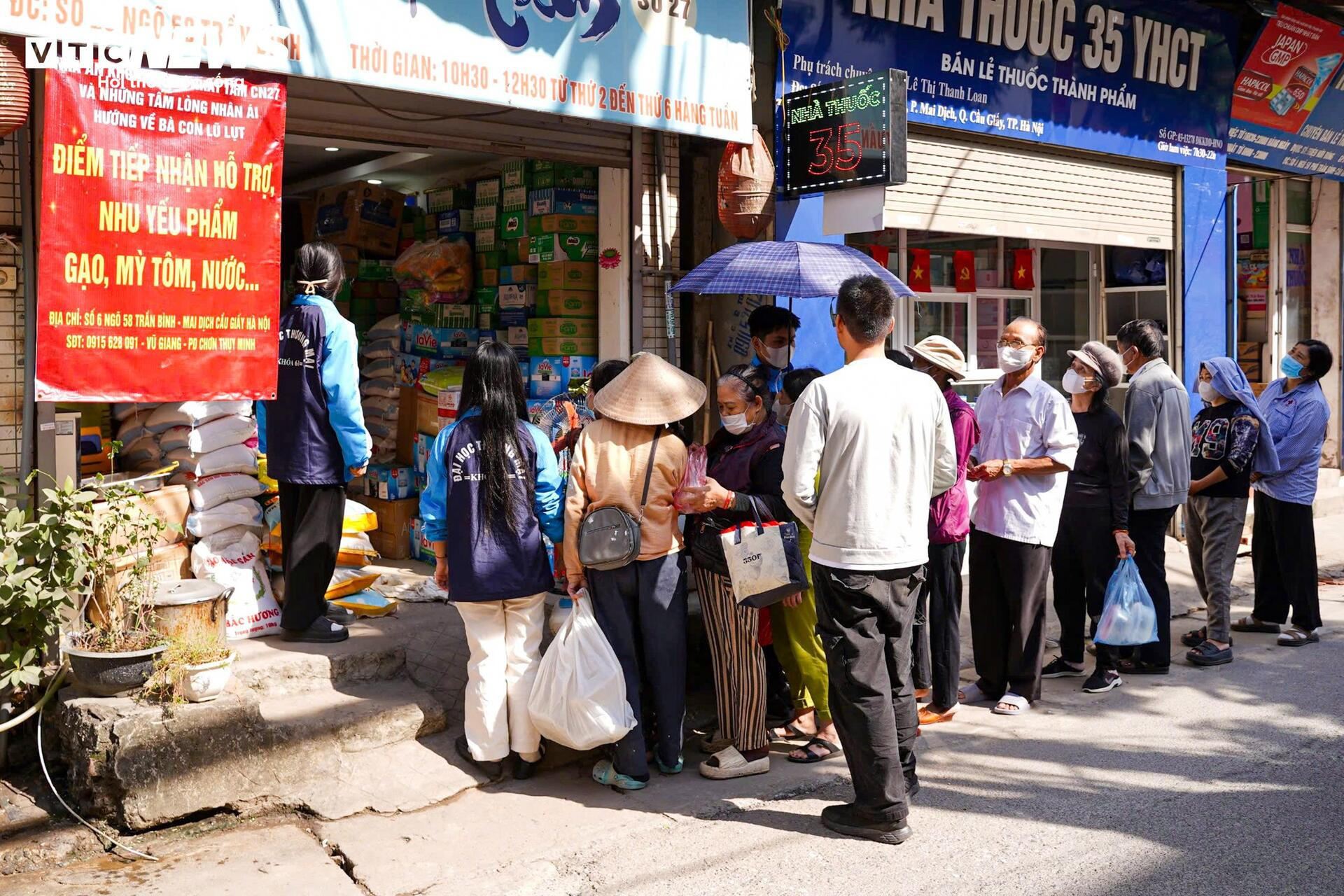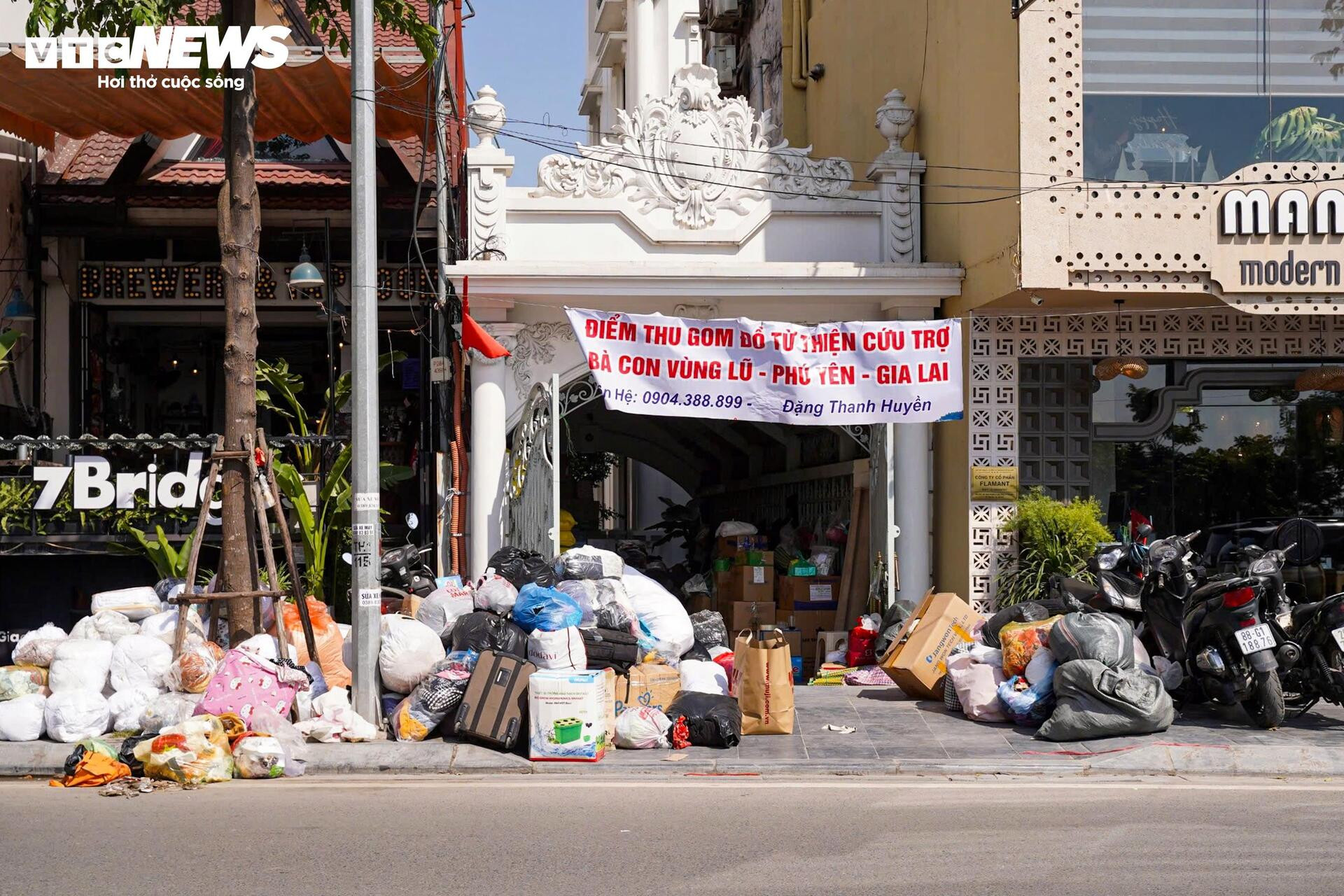 Chỉ với những tấm bảng thông báo đặt trước cửa, nhiều địa điểm nhanh chóng trở thành nơi người dân tìm đến để gửi quà cứu trợ, tạo thành dòng người nối dài suốt cả ngày.