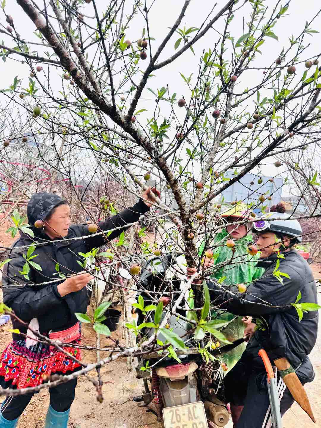 Những ngày cận Tết Nguyên đán Bính Ngọ 2026, bất chấp thời tiết không thuận lợi, không ít người lên Sơn La 'săn' đào cổ thụ, mang về Hà Nội đón Tết. Trong đó, những cây có cành đào trĩu quả đang được nhiều người sành chơi săn tìm.