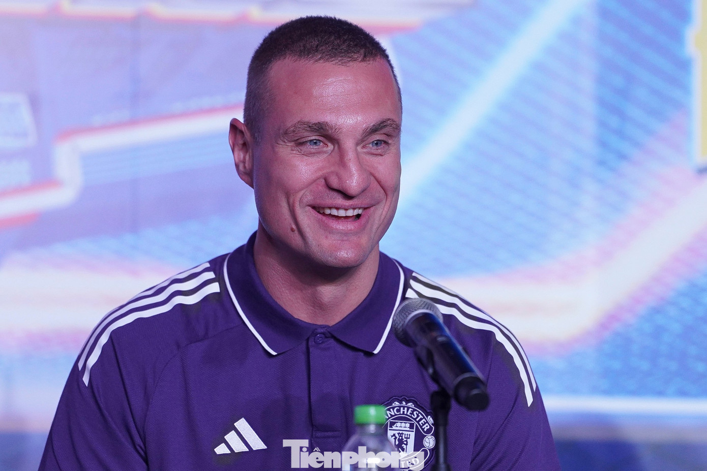 Vidic có nụ cười khá hiền, trả lời phỏng vấn rất từ tốn.